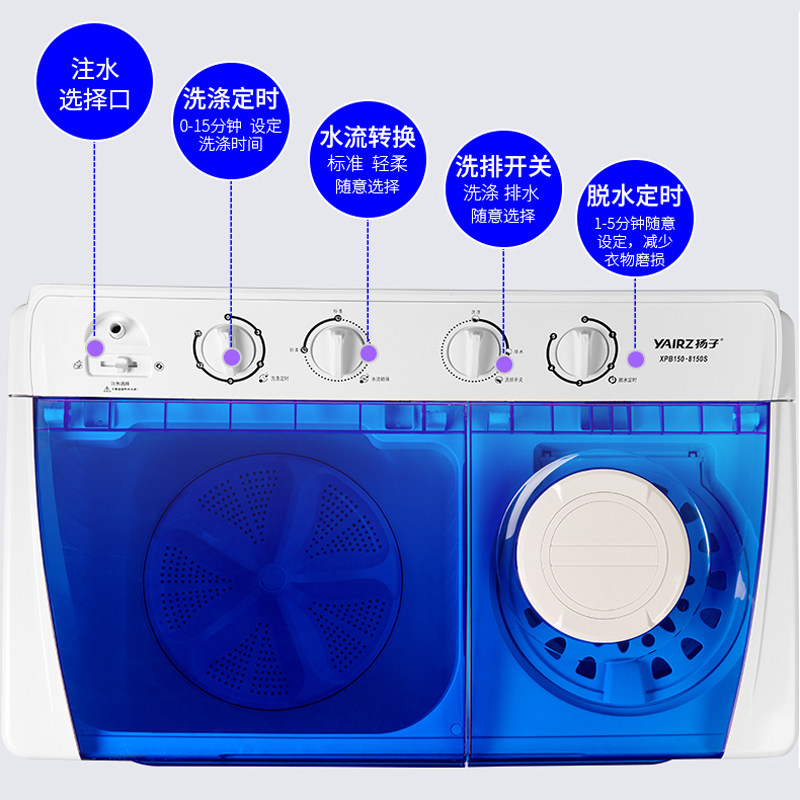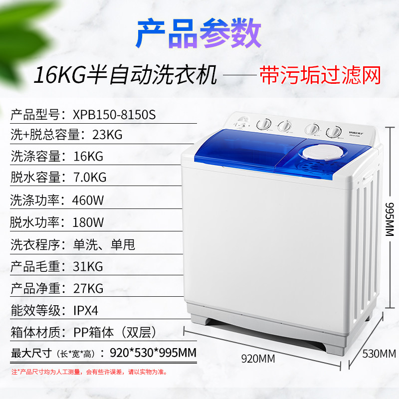 扬子16公斤半自动洗衣机家用大容量双桶筒缸小型宿舍租房迷你洗脱
