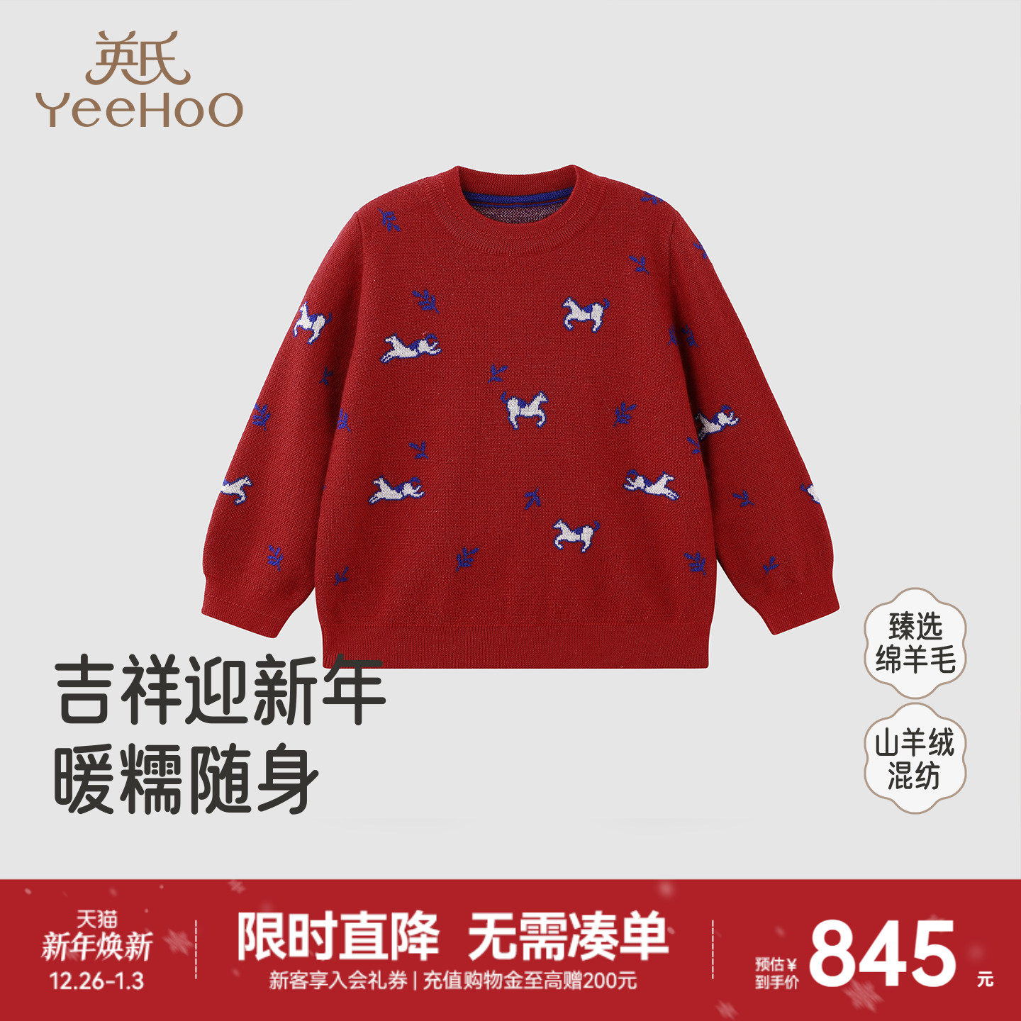 【高定系列】英氏儿童毛衣秋冬男童女童羊毛衫羊绒衫套头新年圣诞