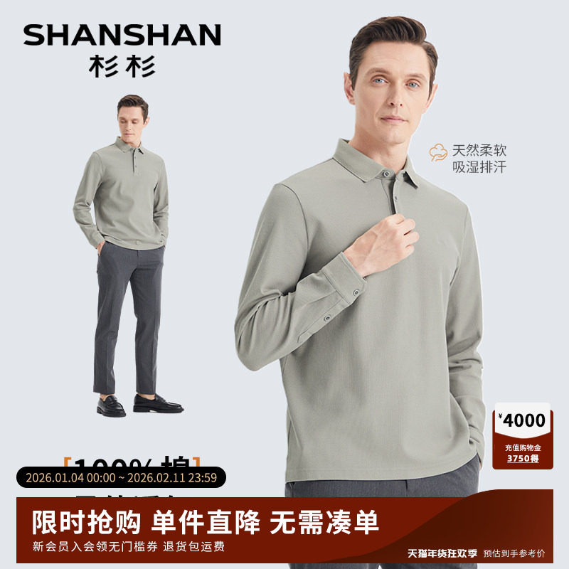 杉杉男士长袖polo衫商务休闲2025秋季新款翻领t恤男款纯棉打底衫