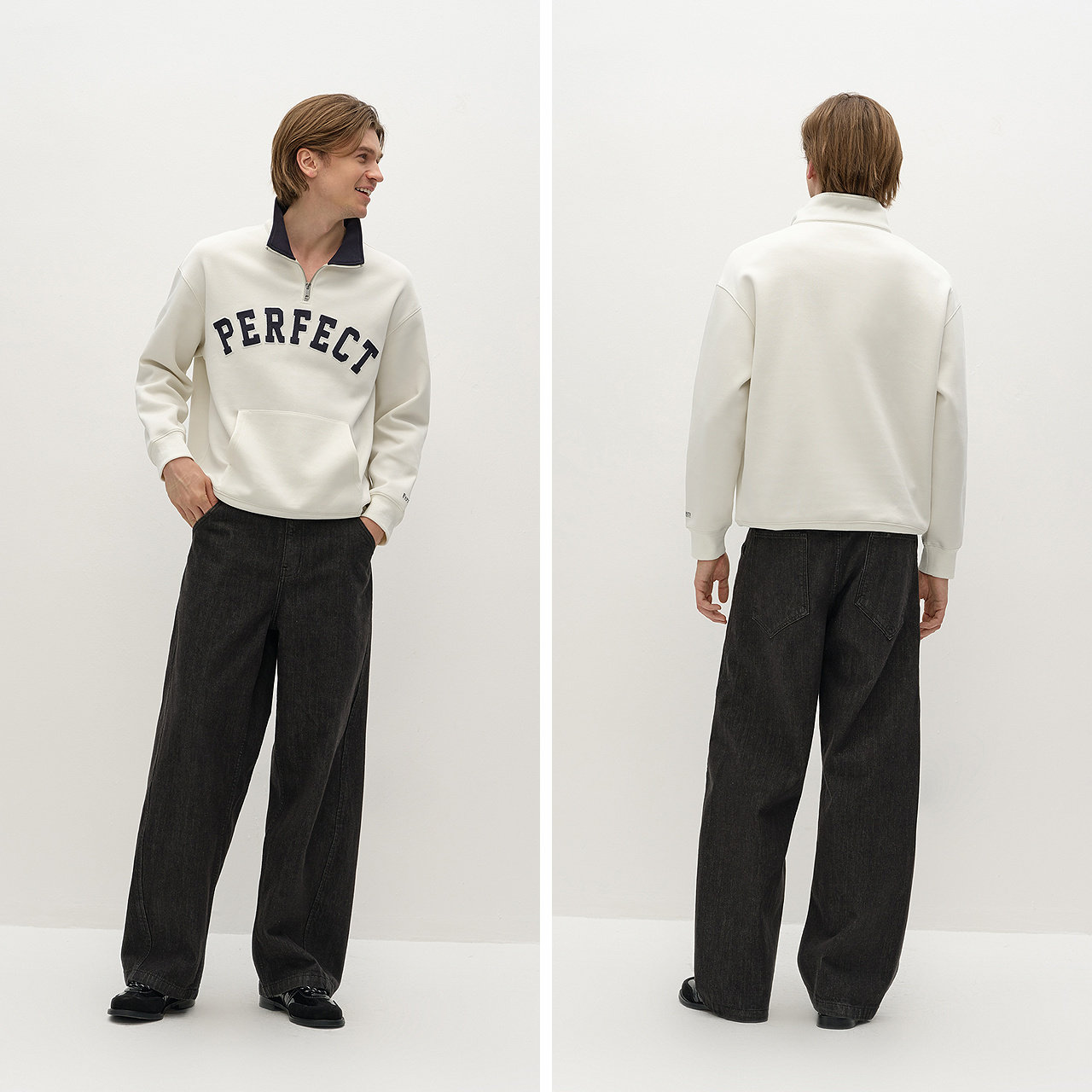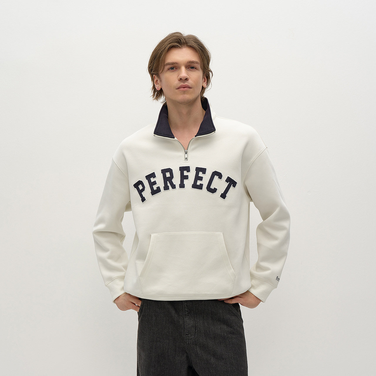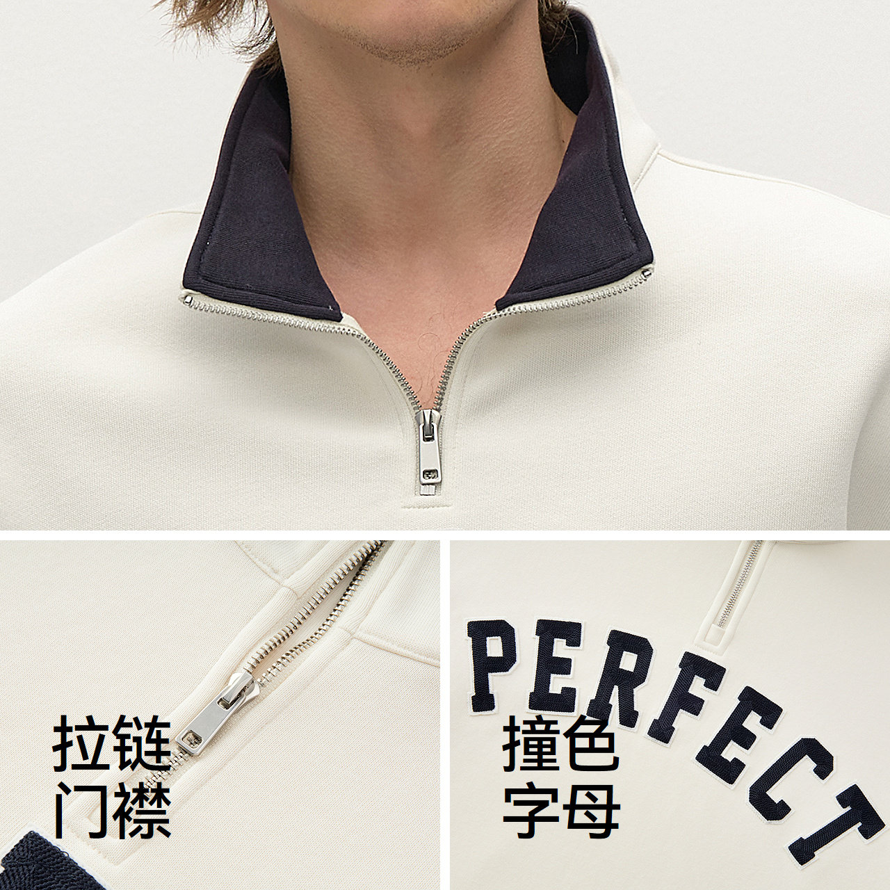 宽松半开襟立领卫衣 复古学院风刺绣