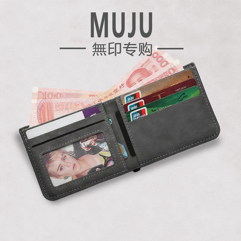 日本MUJ翻毛皮男士钱包皮夹证件收纳包简约折叠钱夹驾驶证套轻薄