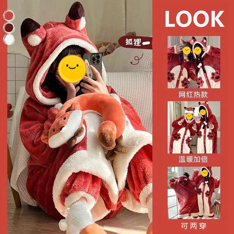珊瑚绒睡衣秋冬款女2025冬季男士加厚睡裙熊猫睡袍连体家居服动物