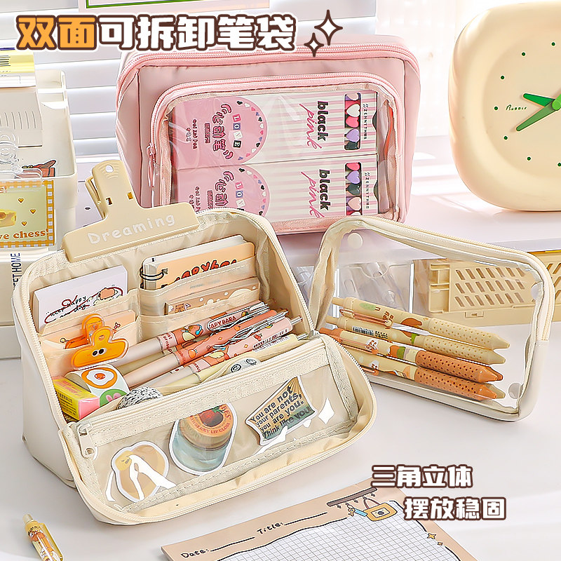多功能透明笔袋可拆卸女生2025新款文具盒男孩款初中生高中黑色铅笔盒折叠式高颜值ins风痛包文具笔袋女网红