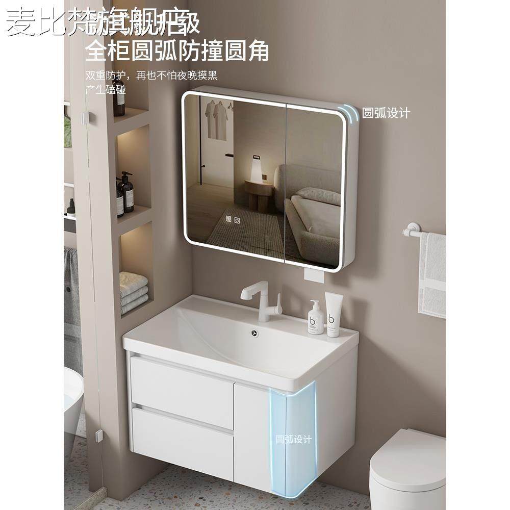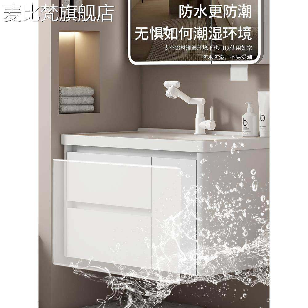 麦比梵加厚太空铝蜂窝圆弧浴室柜陶瓷一体洗脸盆卫生间加深洗手盆柜组合摆件饰品床笠拉车