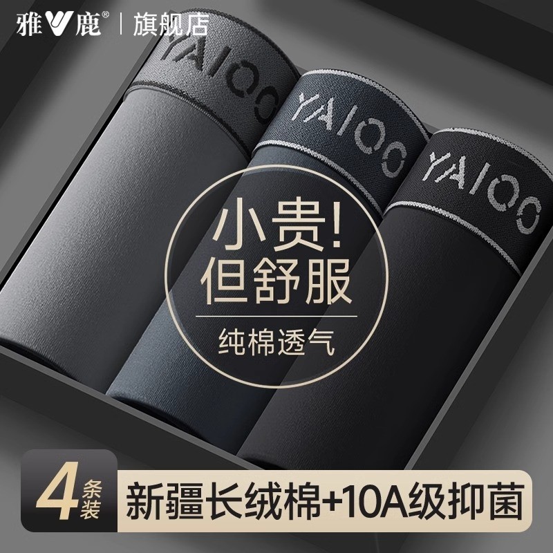 雅鹿男士内裤纯棉正品2025新款正品全棉透气短裤头衩男生中腰礼盒