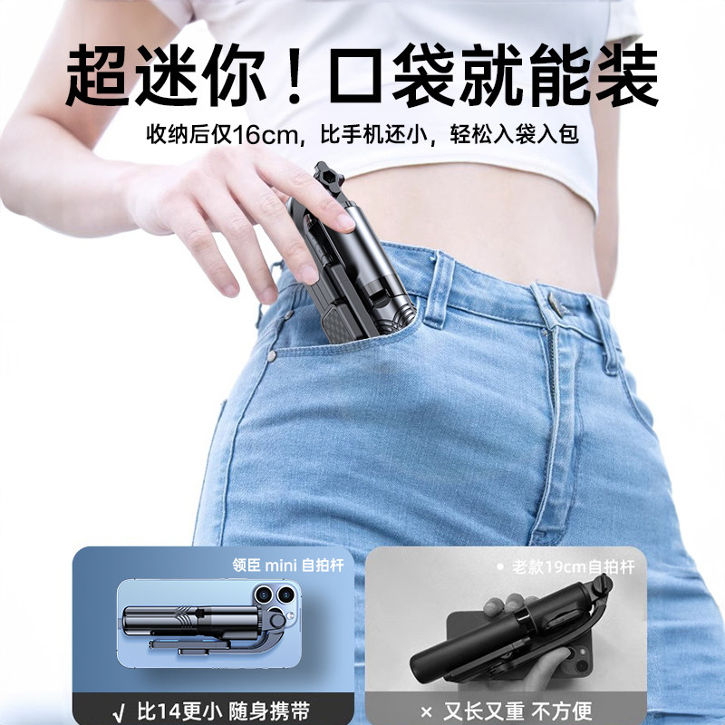 品胜小轻自拍杆迷你旅游便携2025新款通用手机自拍神器360度旋转落地三脚架手持mini蓝牙超轻自拍vlog拍照24