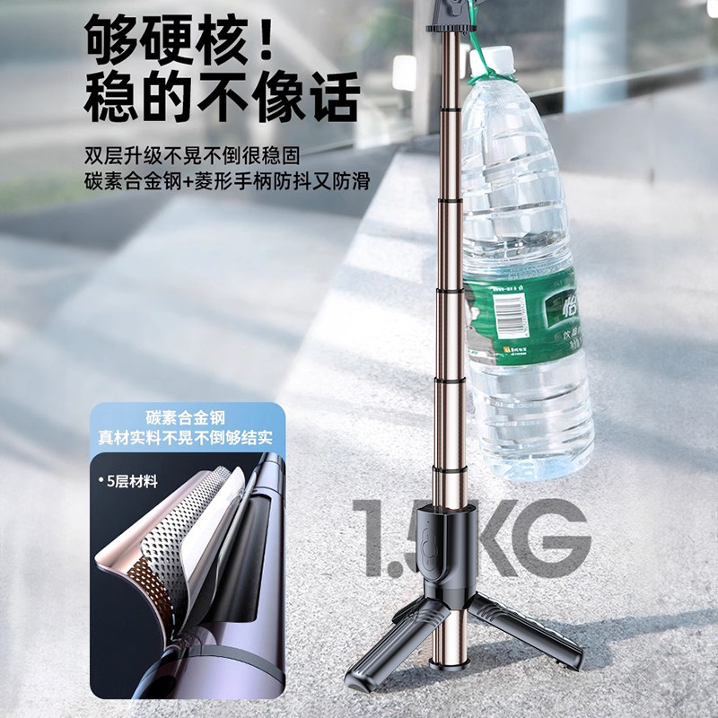 叠品A21P2025新款金属多功能补光自拍杆三脚架遥控拍照神器手机直播支架360°旋转拍照抖音蓝牙便携式防抖
