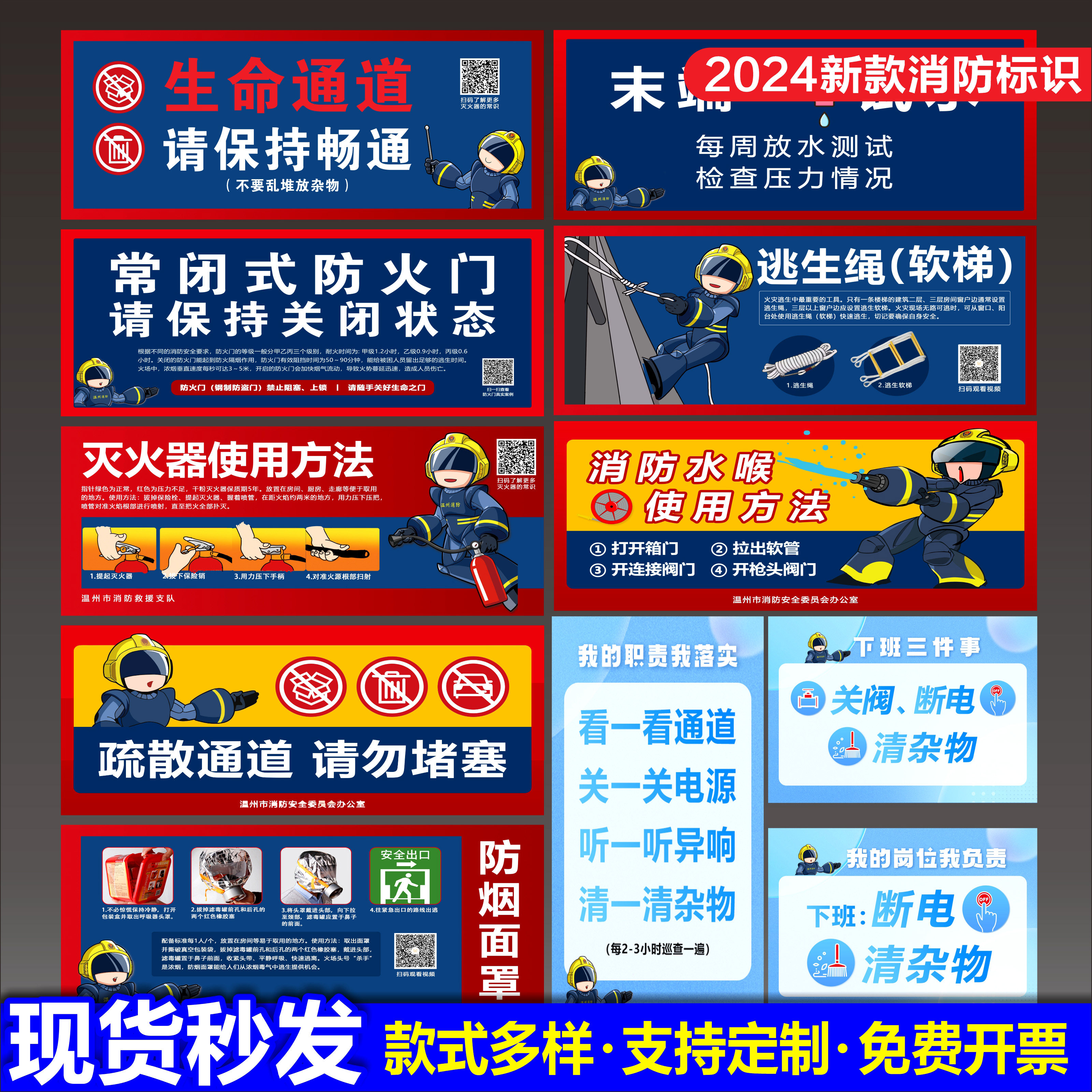 温州消防标识标牌消火栓标识牌消防栓贴纸常闭式防火门灭火器贴纸