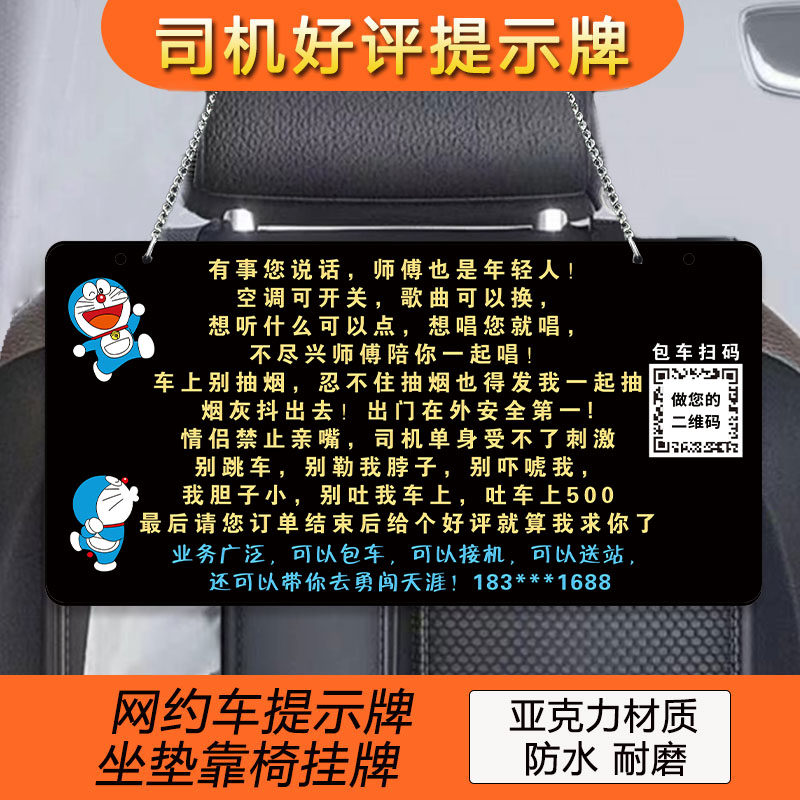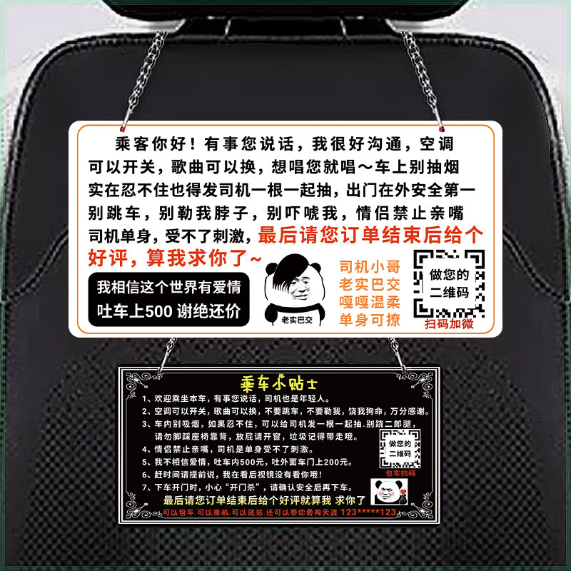 网约车车内提示牌滴滴司机必备车内提示贴车内禁止吸烟提示牌请勿吃东西脚踏座椅后排广告牌温馨提示标语挂牌