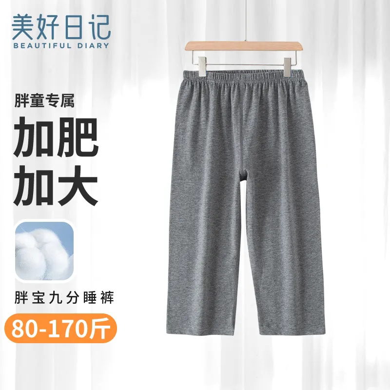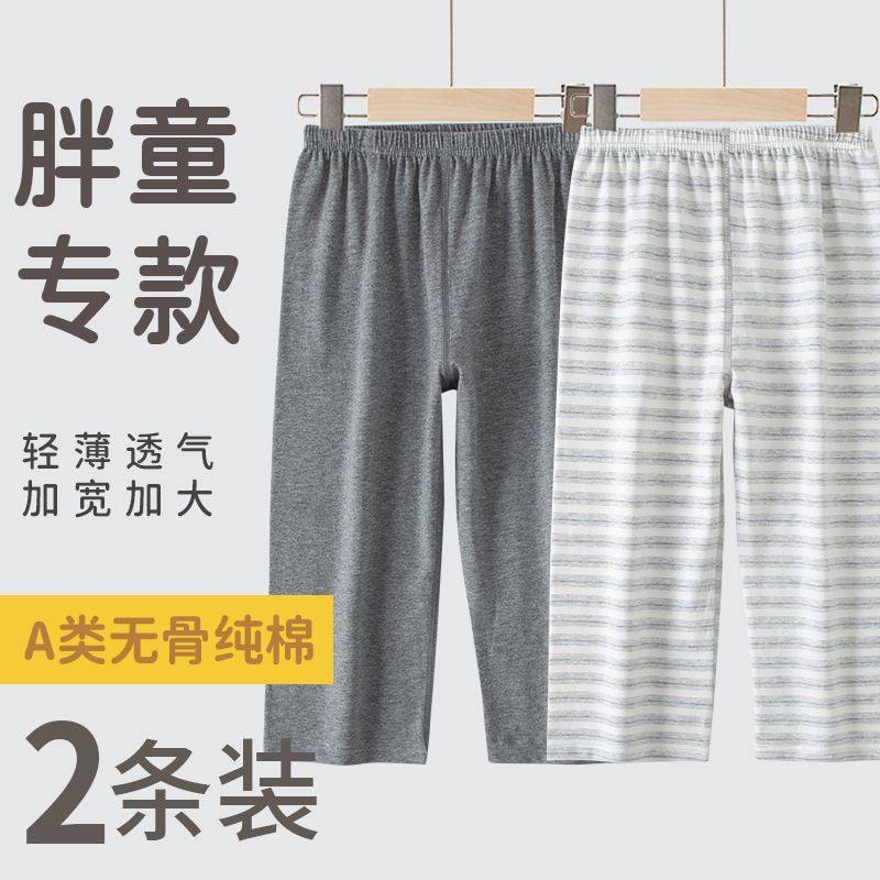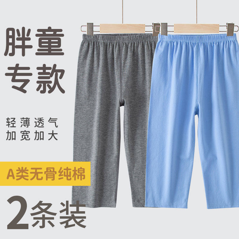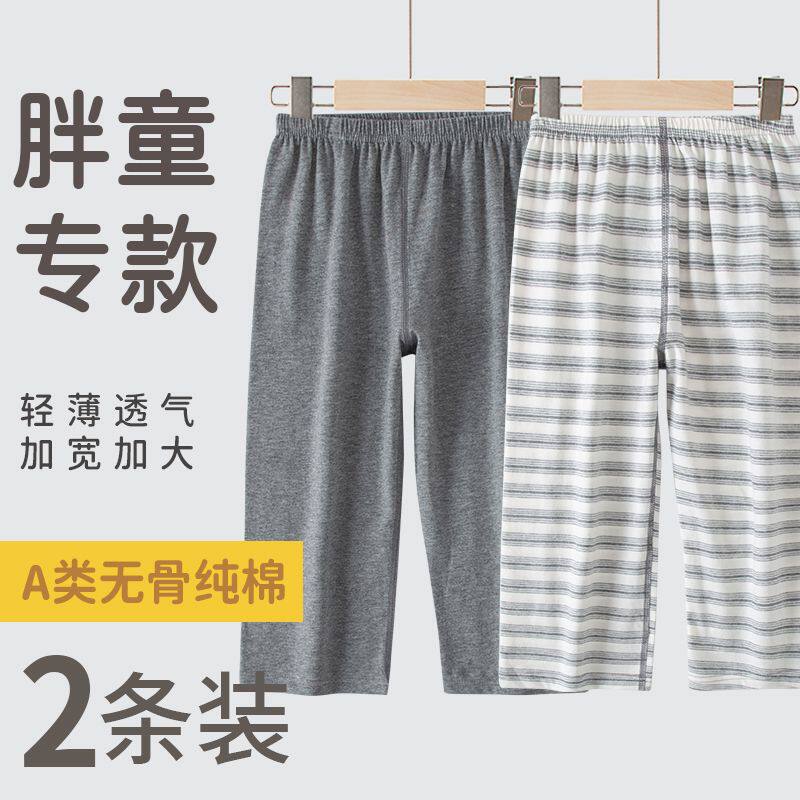 夏季纯棉无骨睡裤男童加宽加大轻薄九分空调裤日系胖童家居裤薄款