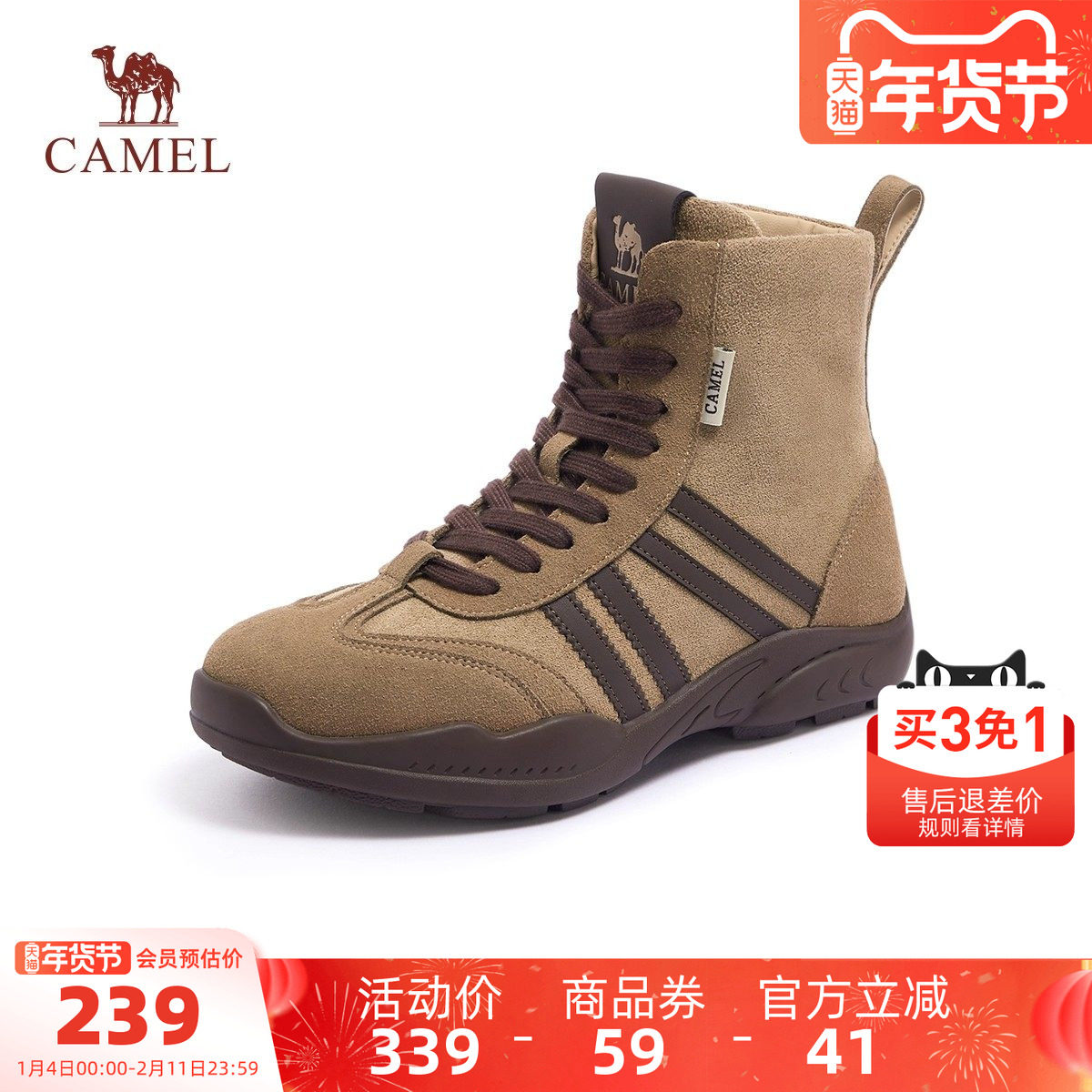 骆驼女鞋2025秋季新款运动鞋厚底增高休闲鞋女复古百搭高帮鞋女