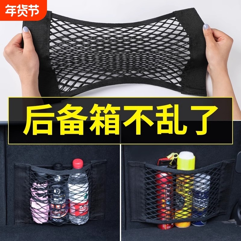 汽车后备箱网兜收纳固定神器魔术贴车置物袋车载灭火器固定收纳网