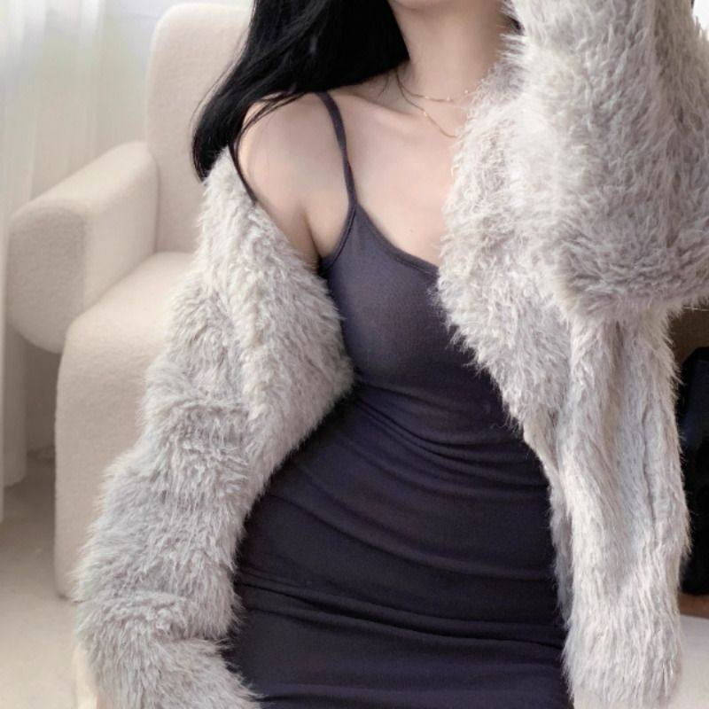 性感纯欲的磨毛吊带内搭包臀连衣裙女秋冬高级感显瘦收腰短裙外穿