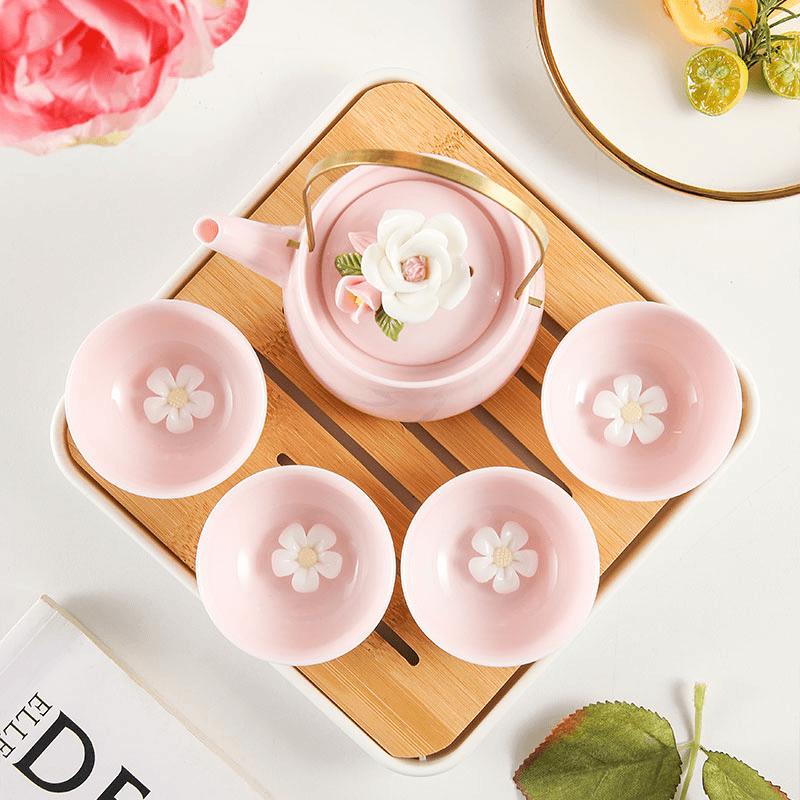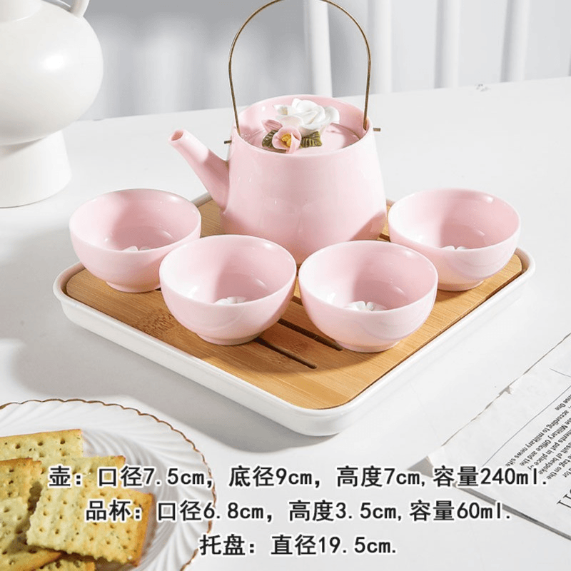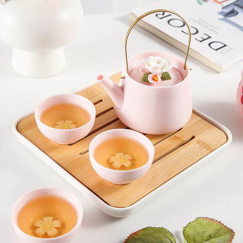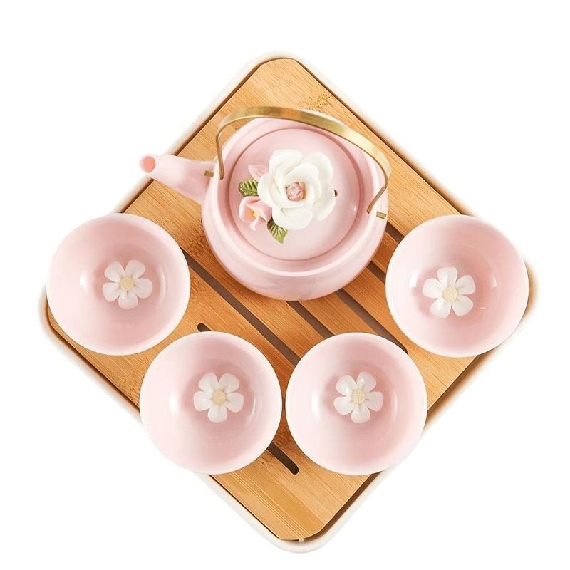新款粉色功夫茶具套装羊脂玉瓷女士家用轻奢陶瓷茶杯泡茶一壶四杯