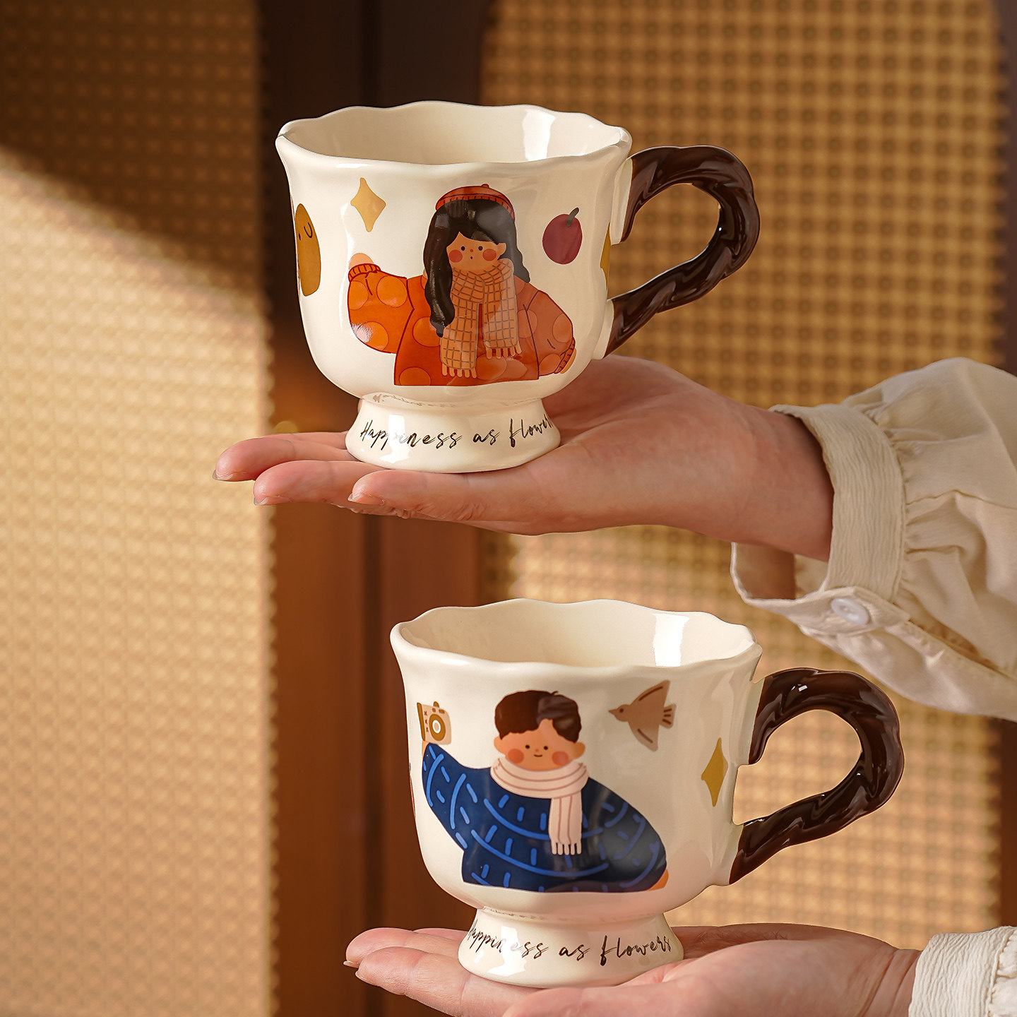 趣皿复古马克杯可爱陶瓷创意牛奶咖啡杯情侣水杯送女生礼物伴手礼