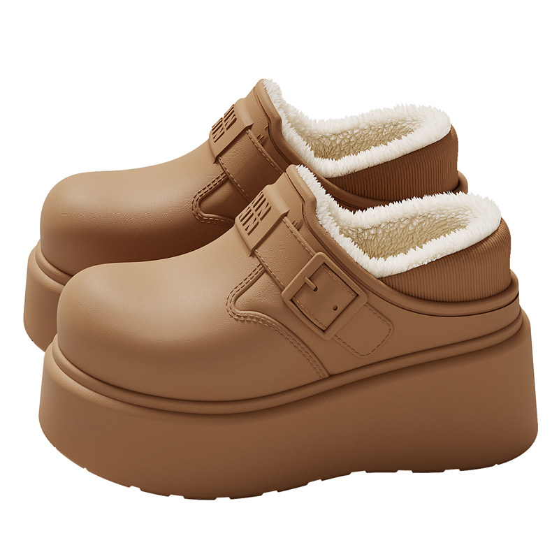 叁叔家~内增高勃肯鞋女加绒秋冬保暖毛毛半拖外穿厚底博肯鞋