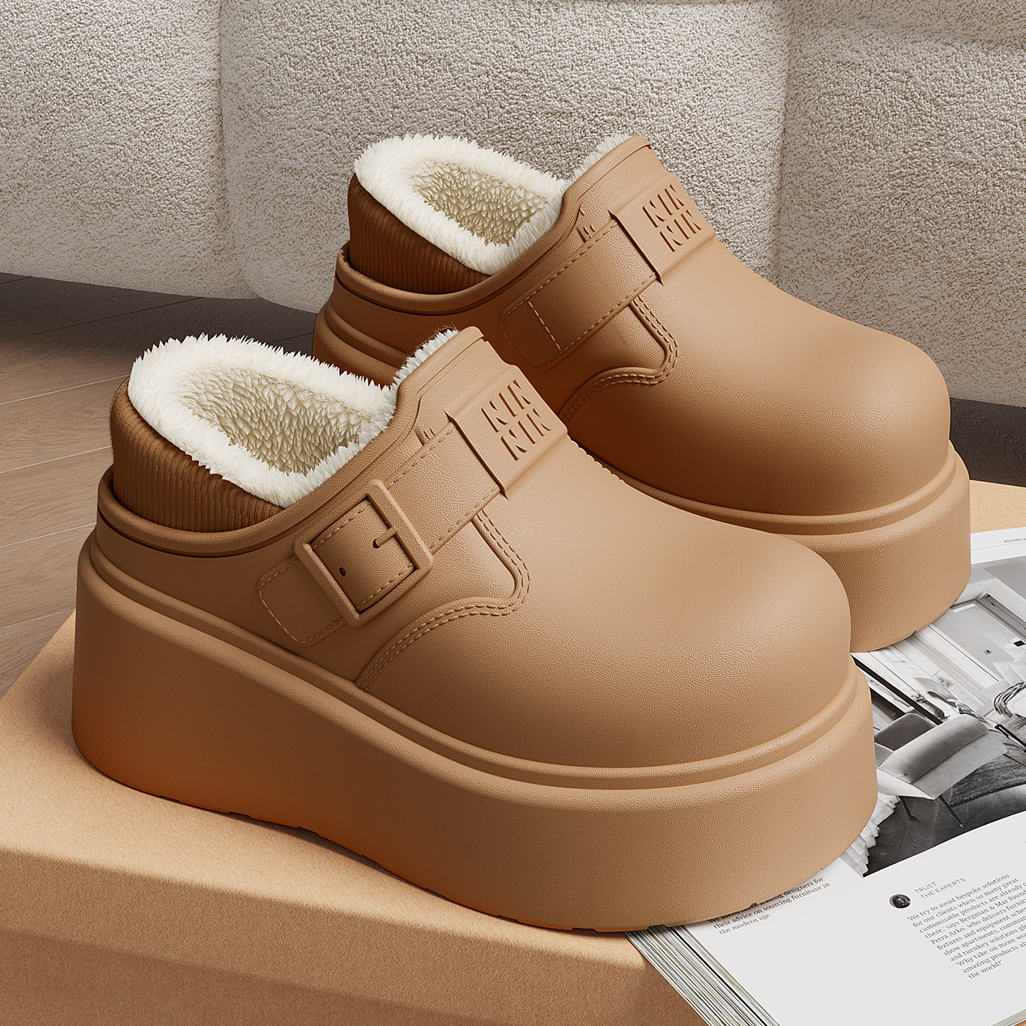 厚底勃肯鞋女2025新款冬季女鞋加绒半拖一脚蹬穆勒鞋子增高博肯鞋