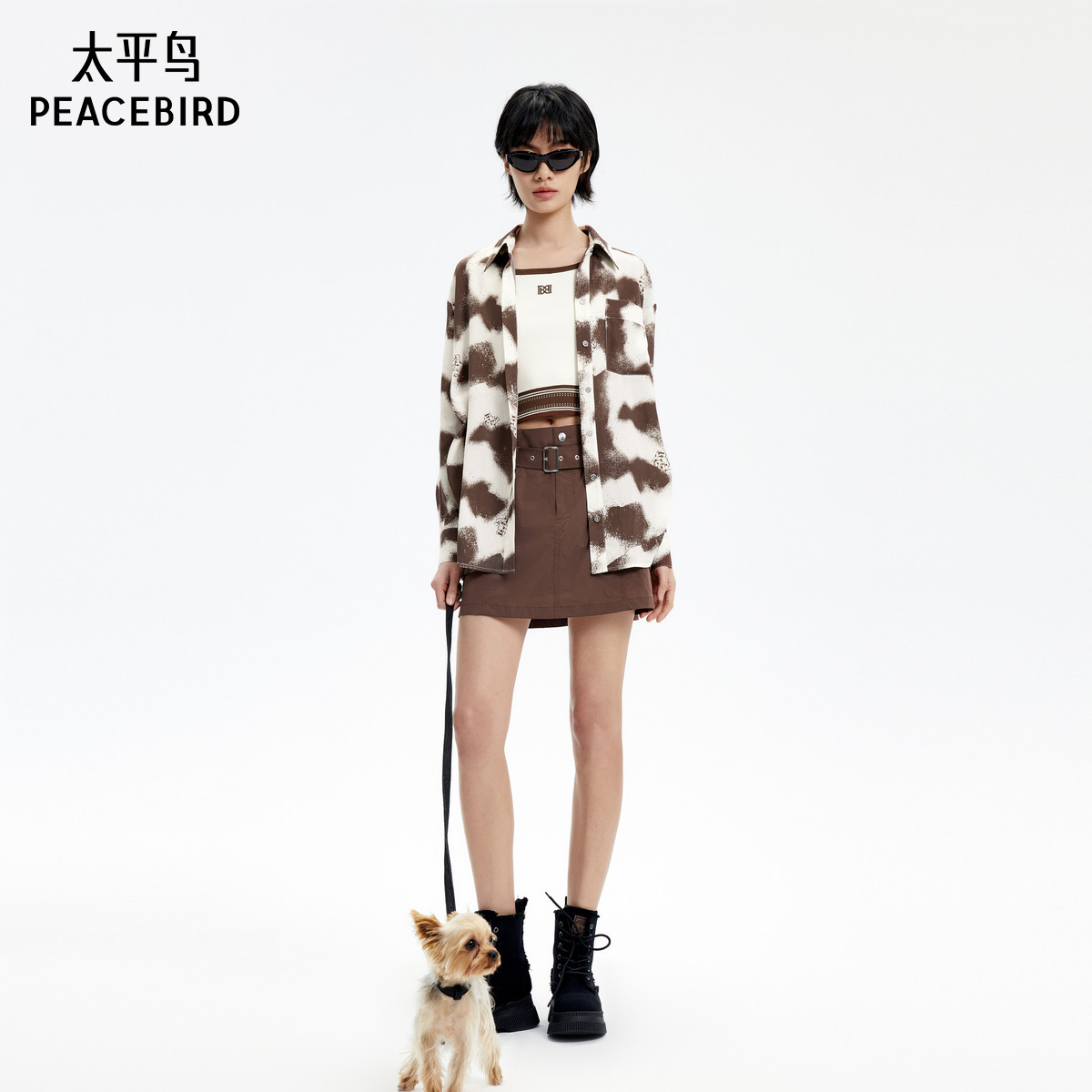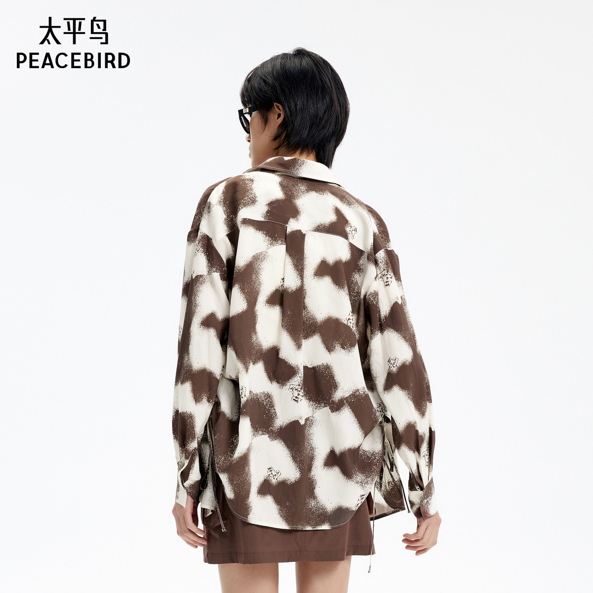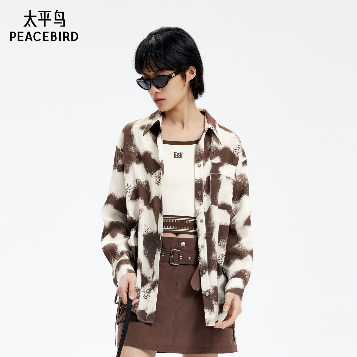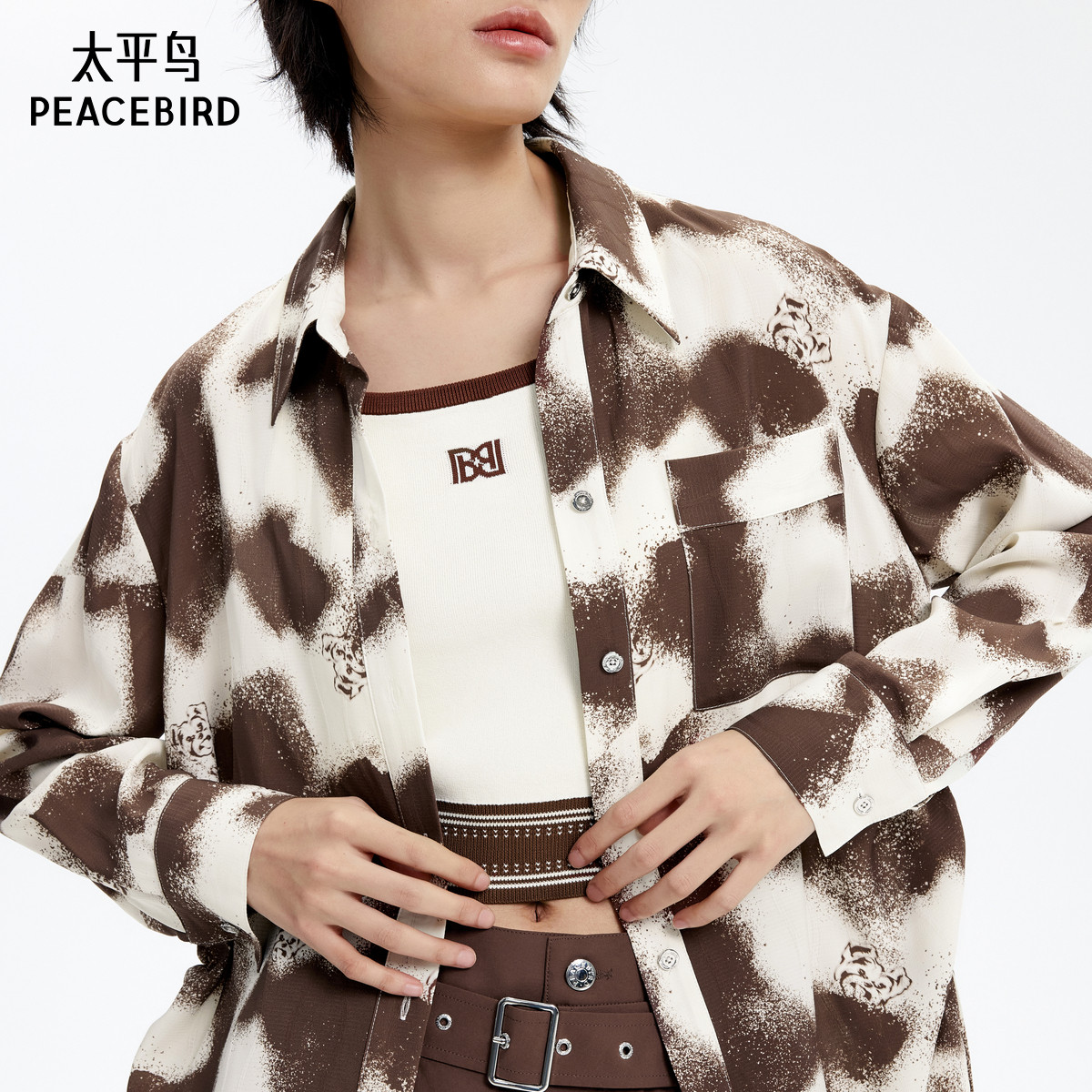 太平鸟女装24年秋季款韩版时尚满印衬衫A3CAE3150