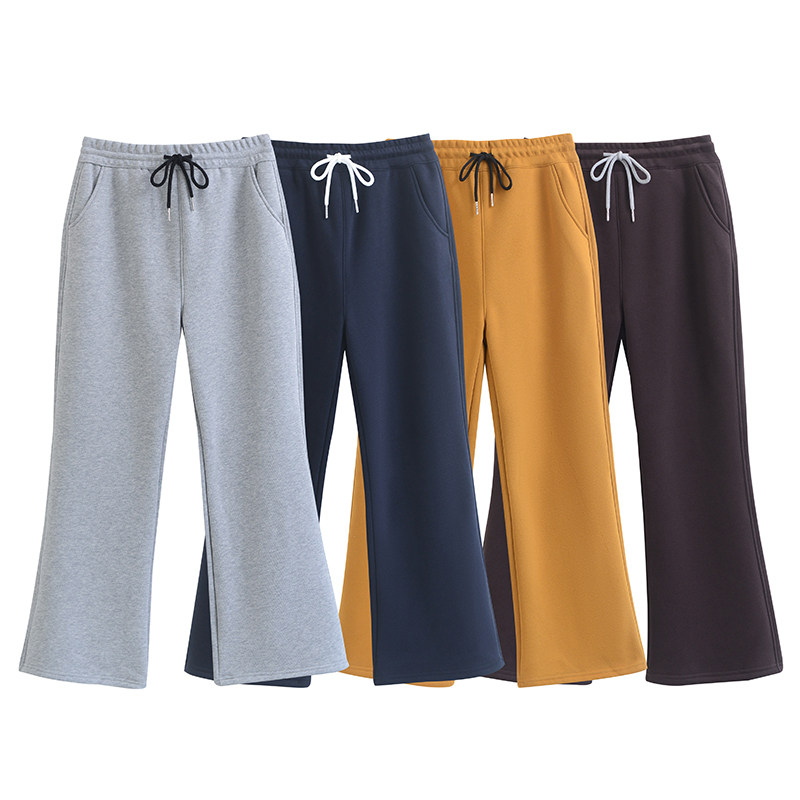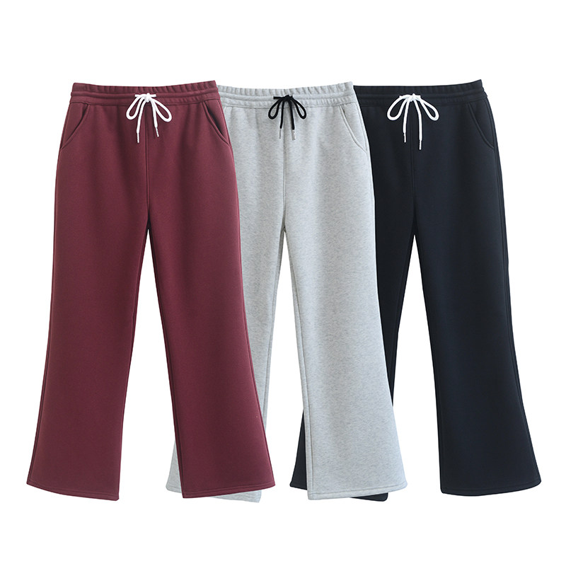 高腰加绒裤秋冬纯色针织休闲裤运动裤阔腿裤卫裤长裤