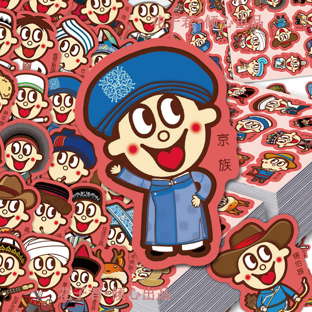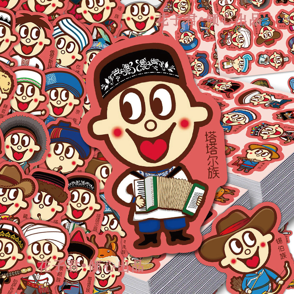 112张旺仔版56个民族贴纸创意中国民族文化传统服饰贴画diy桌面