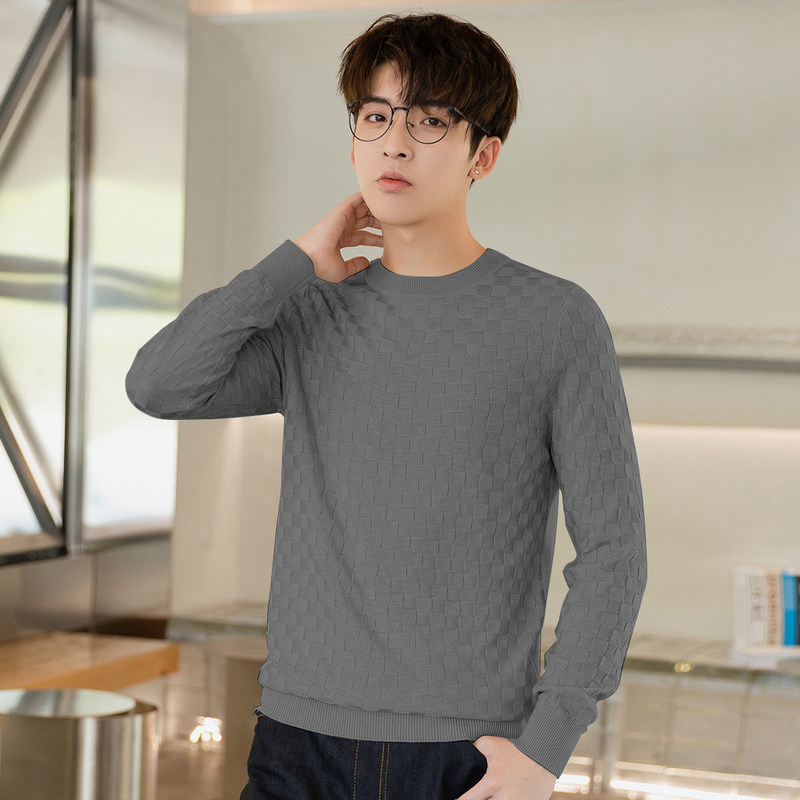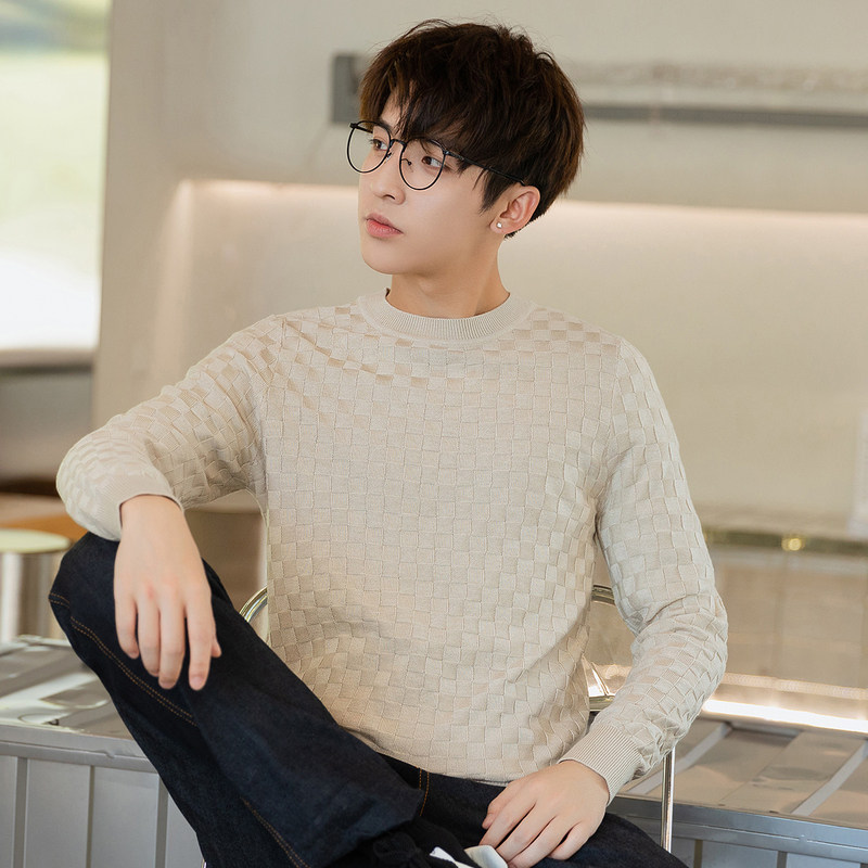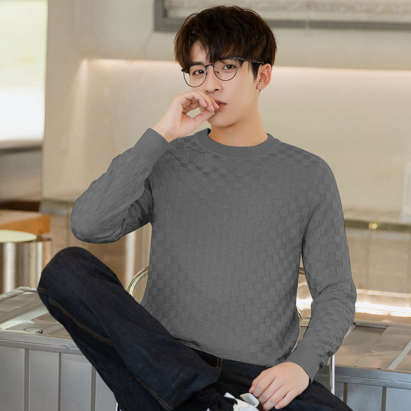 唐狮棋盘格肌理感毛衣男冬季新款圆领纯色休闲毛衫百搭舒适设计感