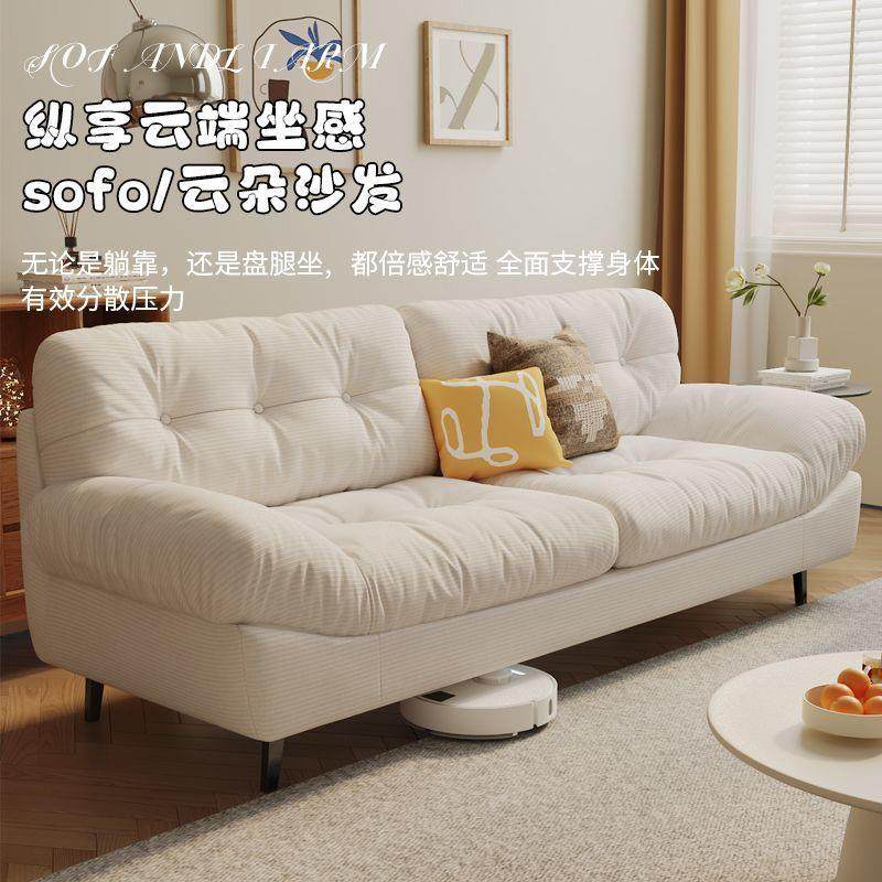 云朵沙发新品现代简约奶油风客厅小户型直排双三人位懒人布艺沙发