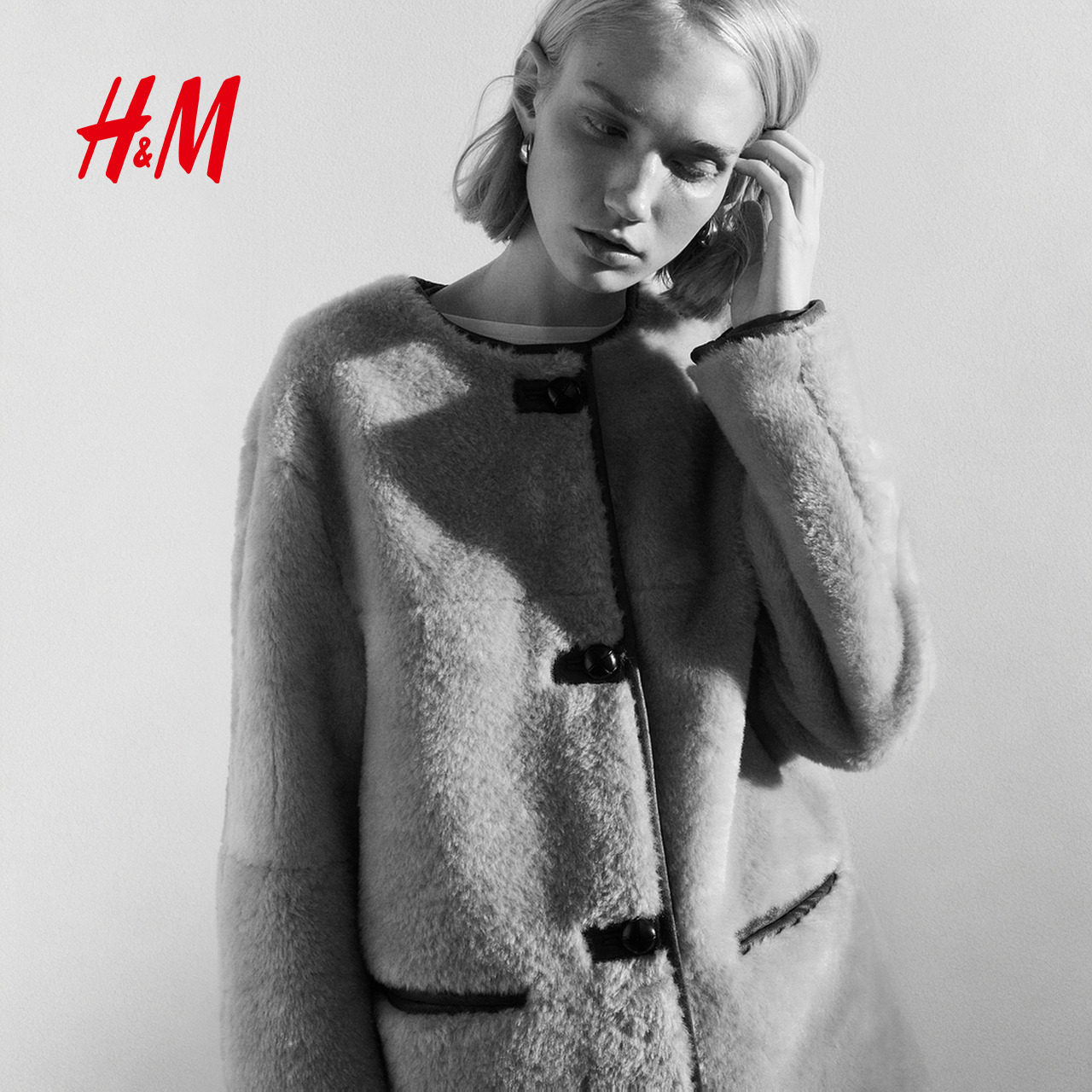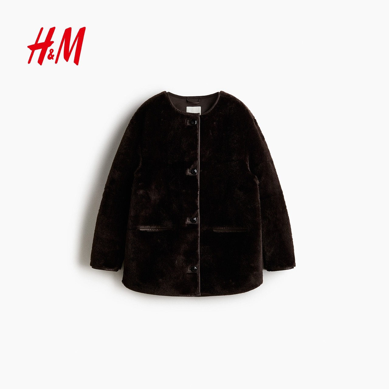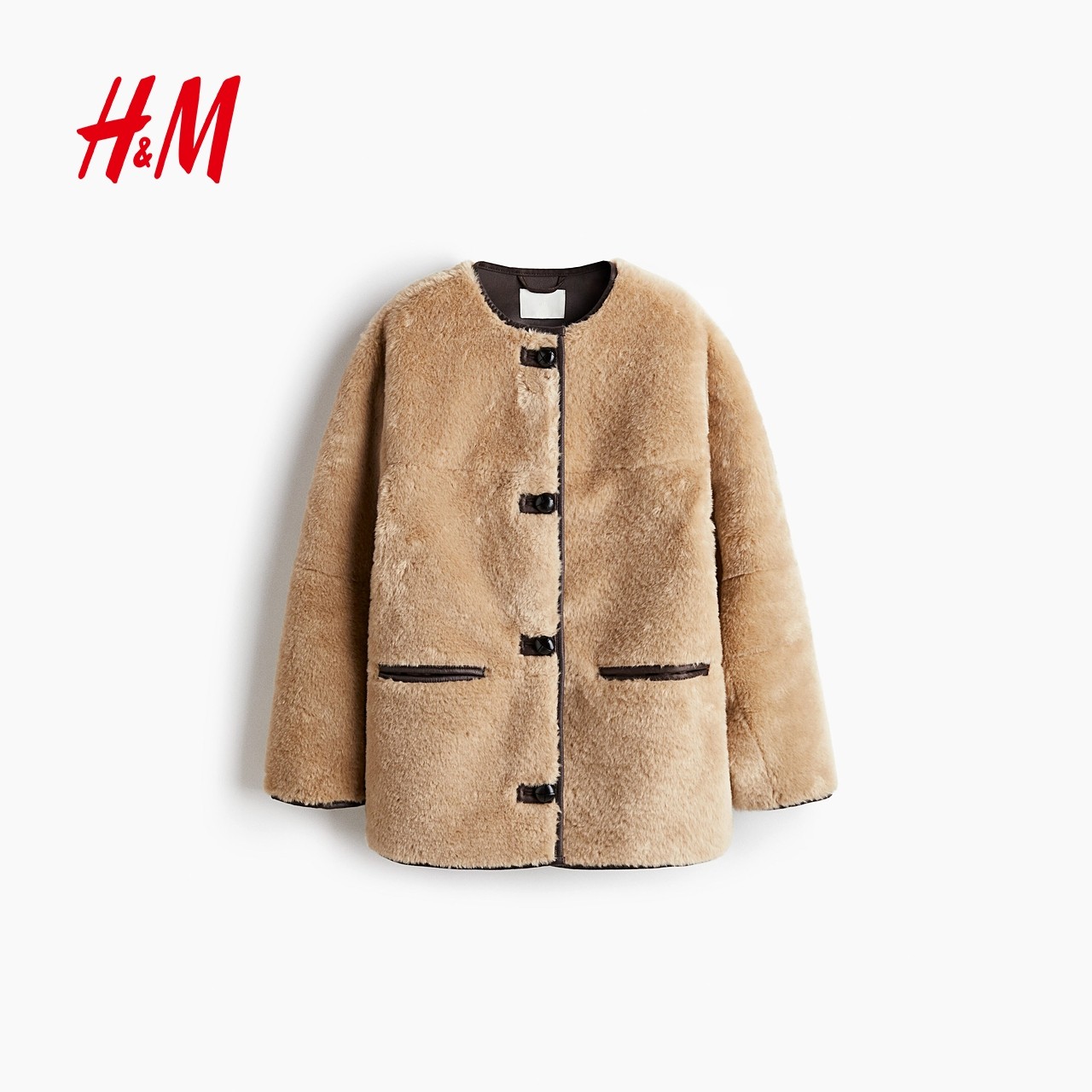 HM女装皮草2025年冬季新款巴恩风保暖冬装外出毛茸外套1307038