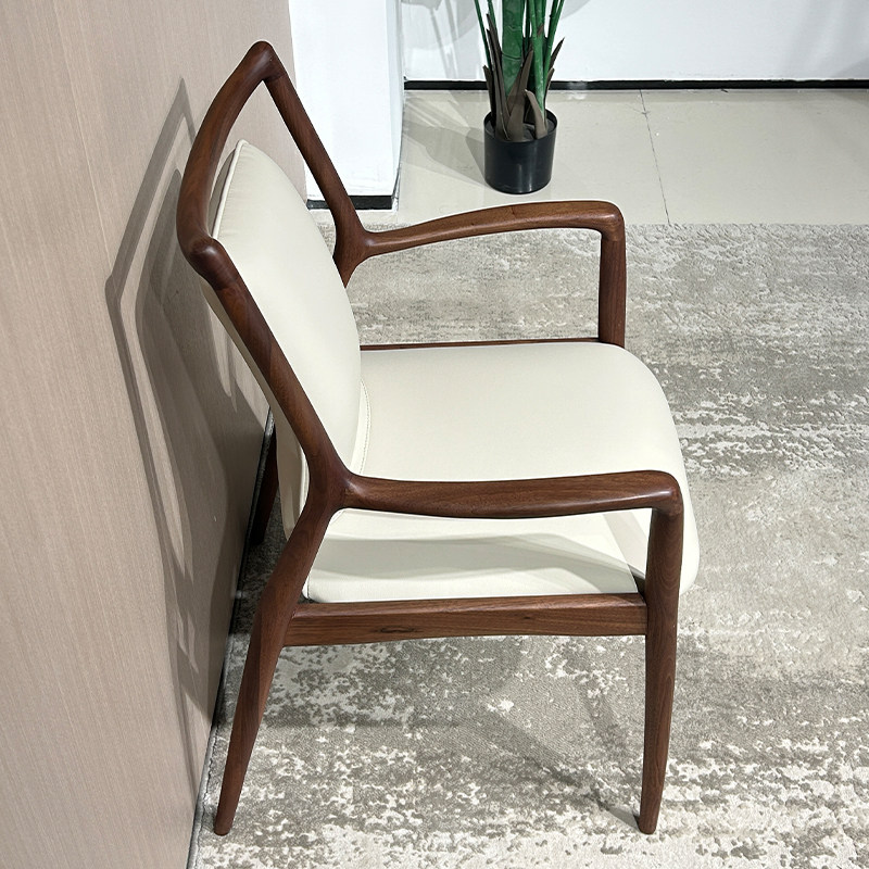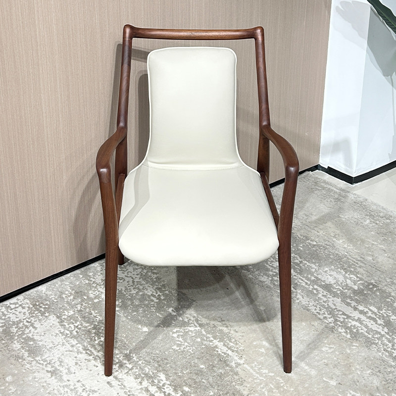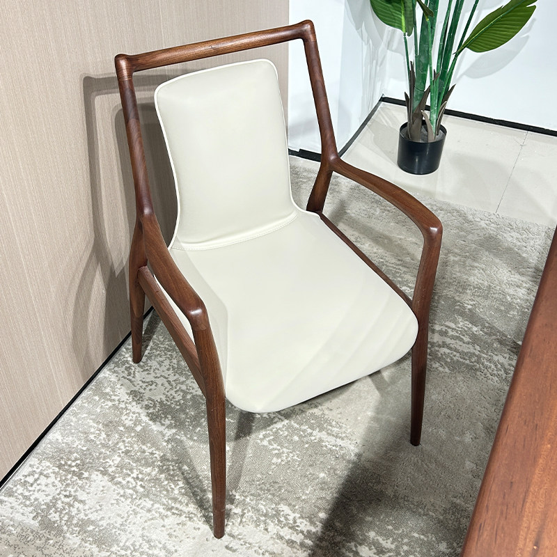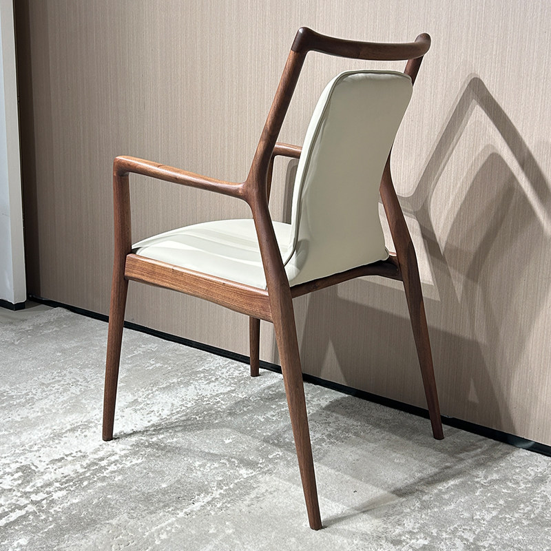 轻奢侘寂风餐椅皮软包设计师现代弯曲木咖啡厅实木椅子家用书房椅