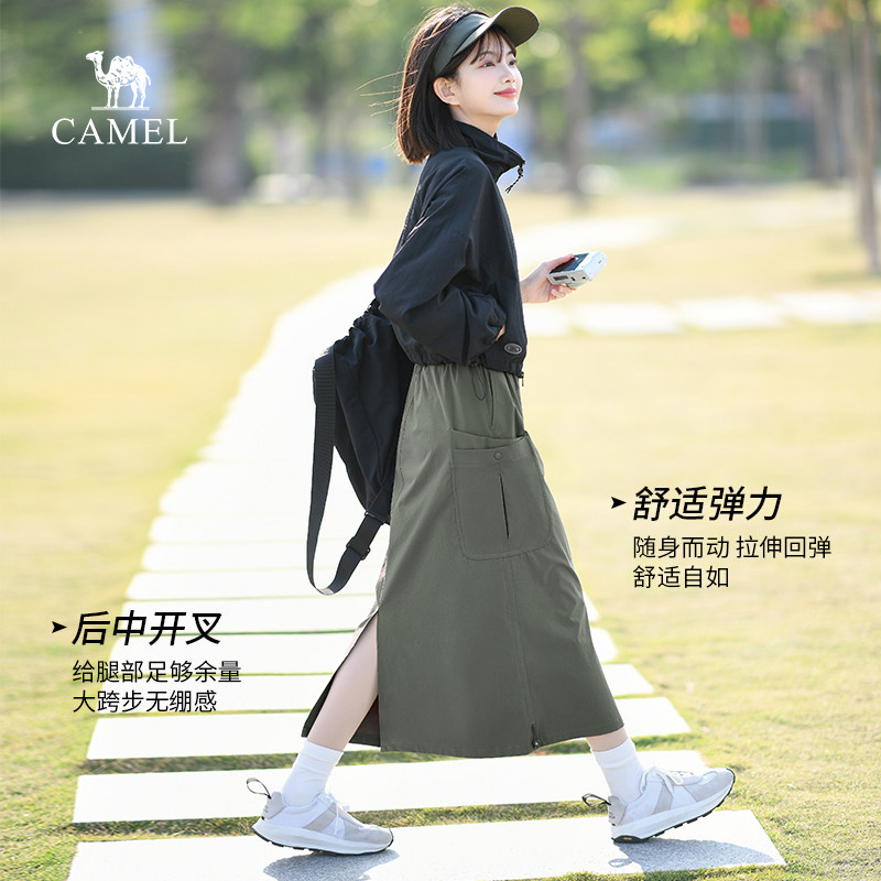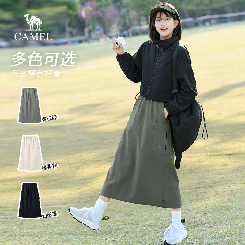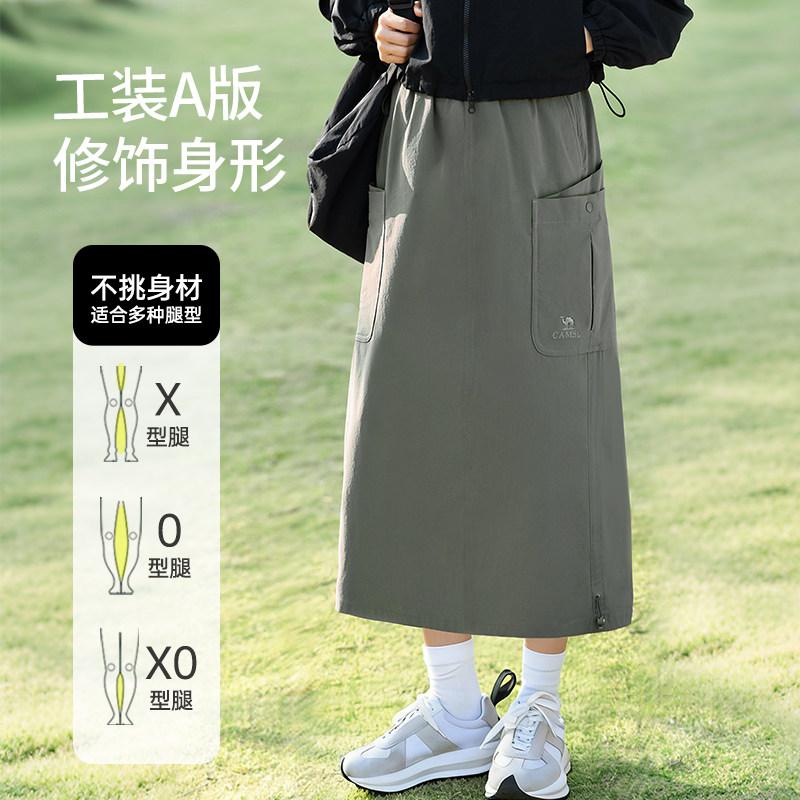骆驼女装半身裙2026春季新款速干黑色A字宽松显瘦高弹工装裙子