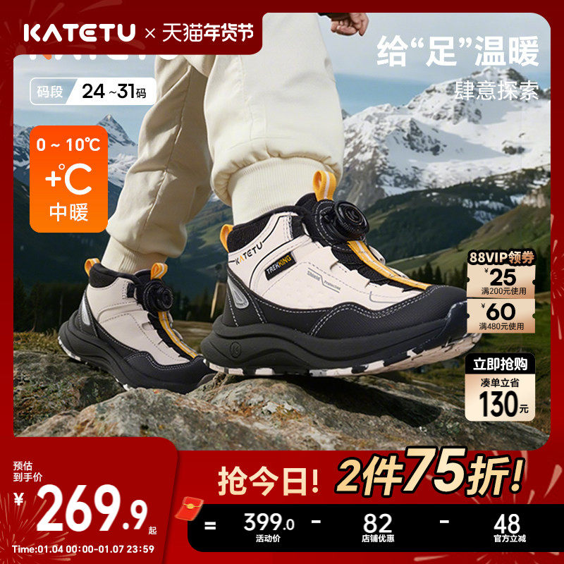 卡特兔儿童户外运动鞋2025冬季防滑耐磨加绒保暖跑步鞋儿童棉