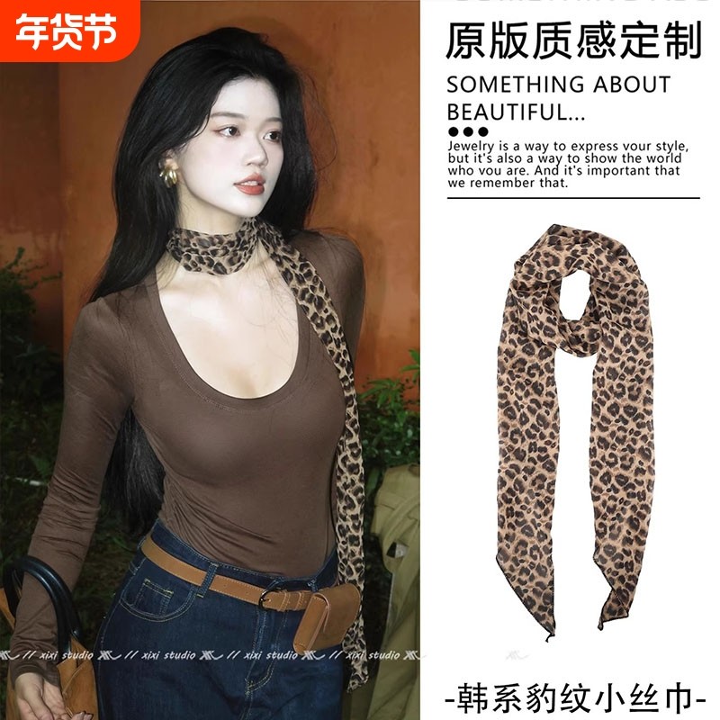 秋冬辣妹风豹纹头饰性感港风系带女长款配饰百搭长款秋冬饰品