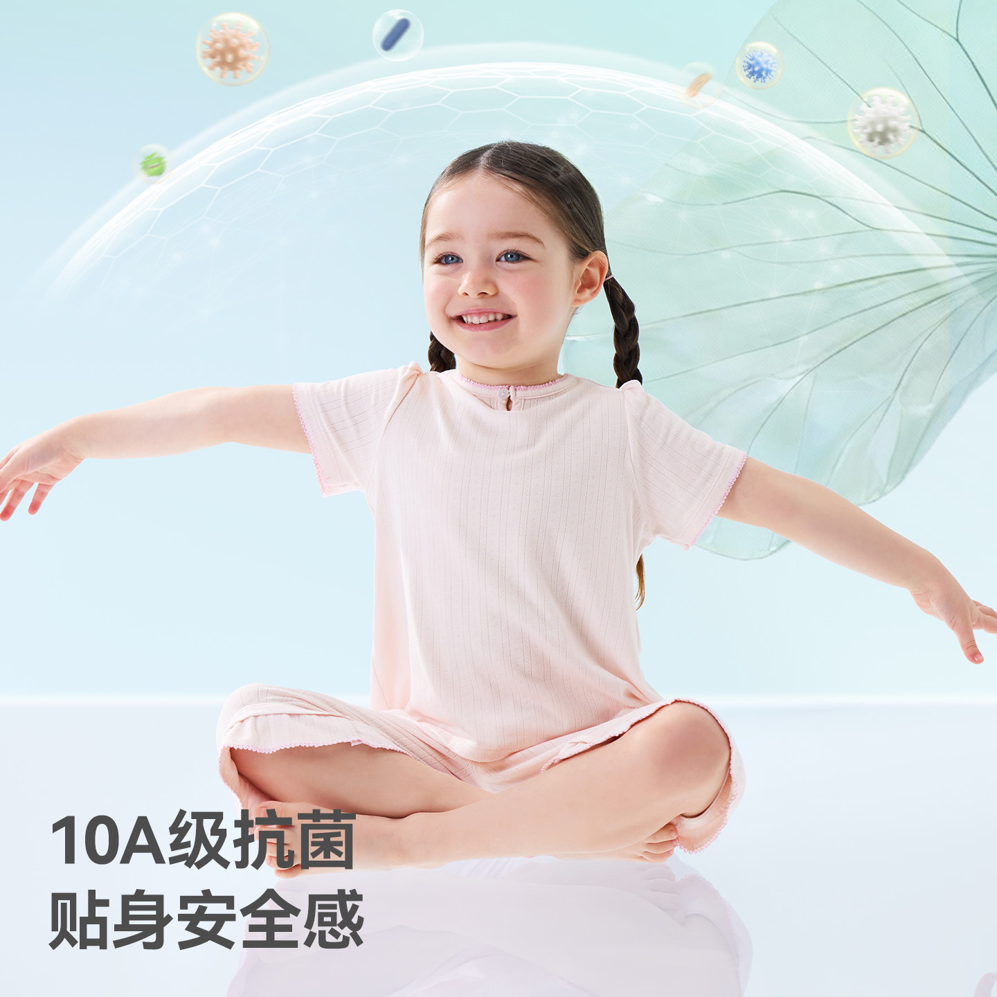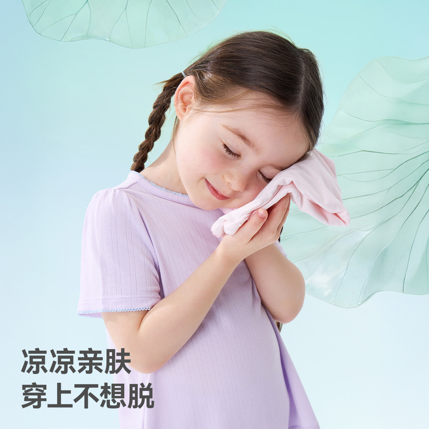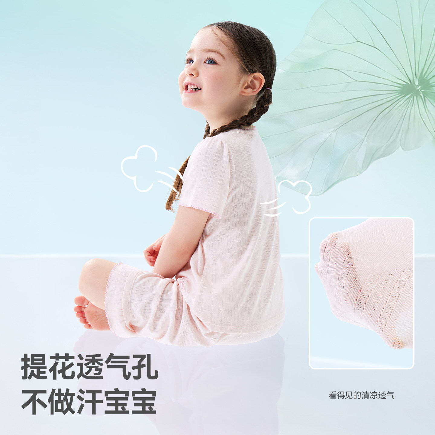 贝肽斯女童睡衣宝宝家居服套装夏季短袖优可丝凉感透气亲子空调服