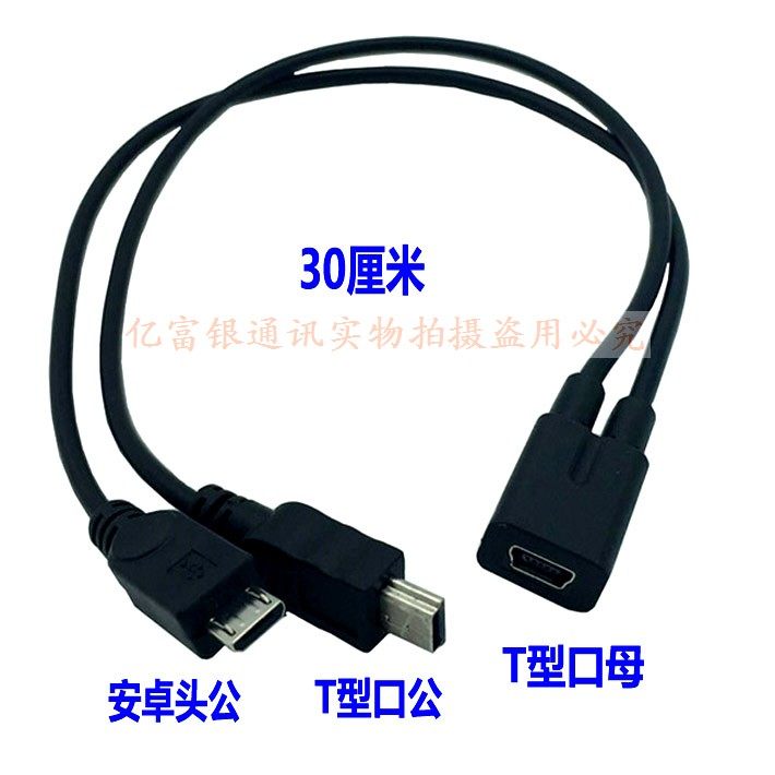 电子狗记录仪mini usb母t型接口转micro typec 3.5圆插头充电源线