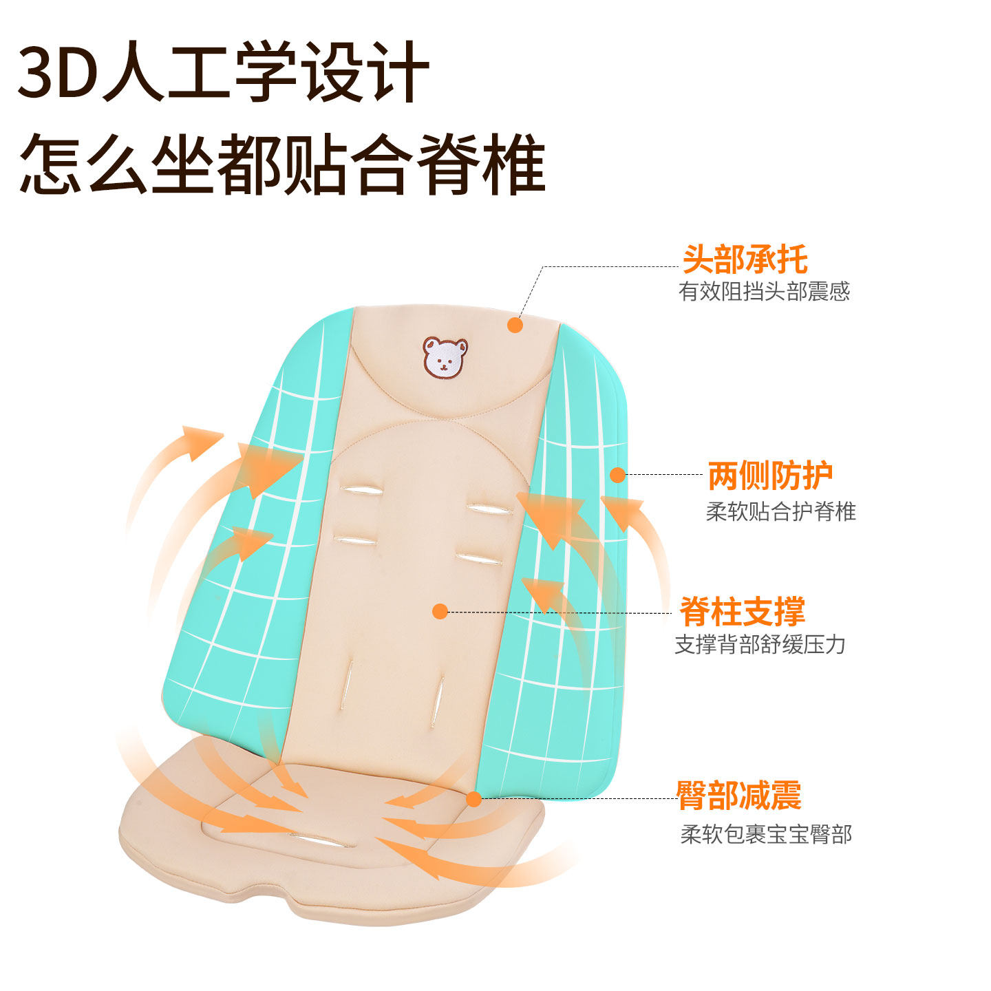 婴儿车垫子四季通用罗马假日坐垫纯棉口袋车宝宝护脊推车垫逸乐途