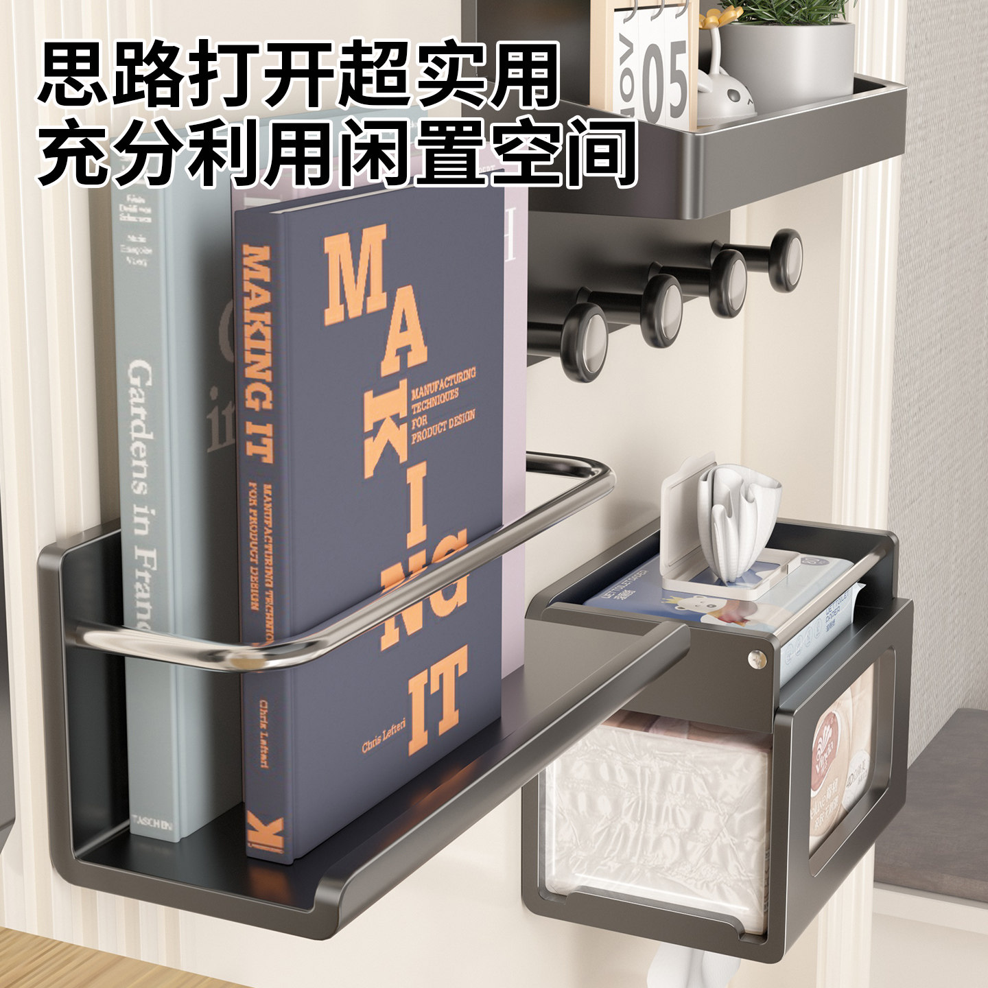 门后磁吸置物架入户玄关收纳钥匙衣服挂钩壁挂拖鞋雨伞架置物神器