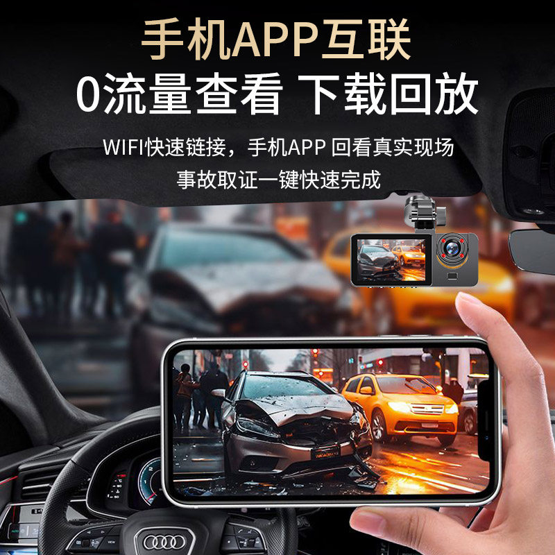 2025新款三录行车记录仪360度全景手机APP互联高清夜视倒车影像