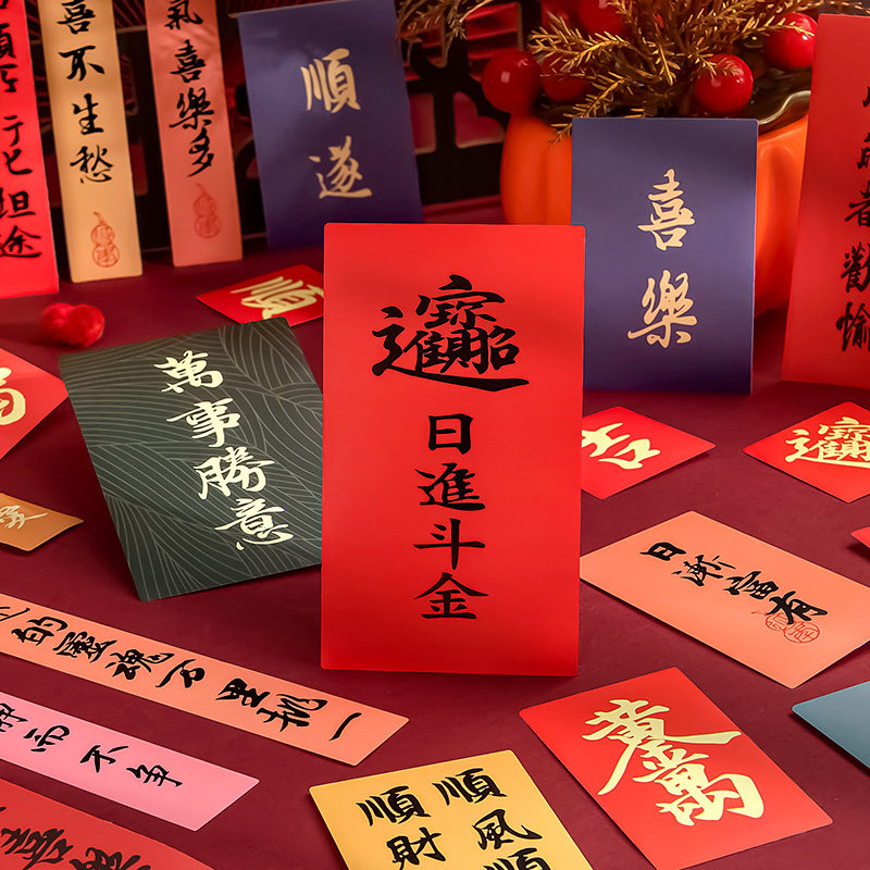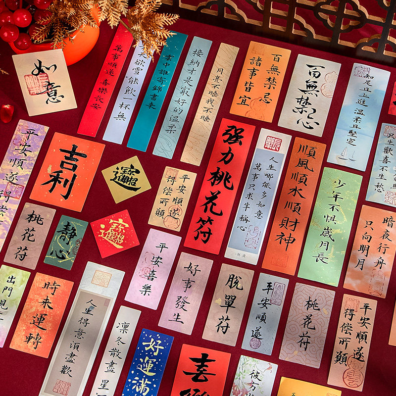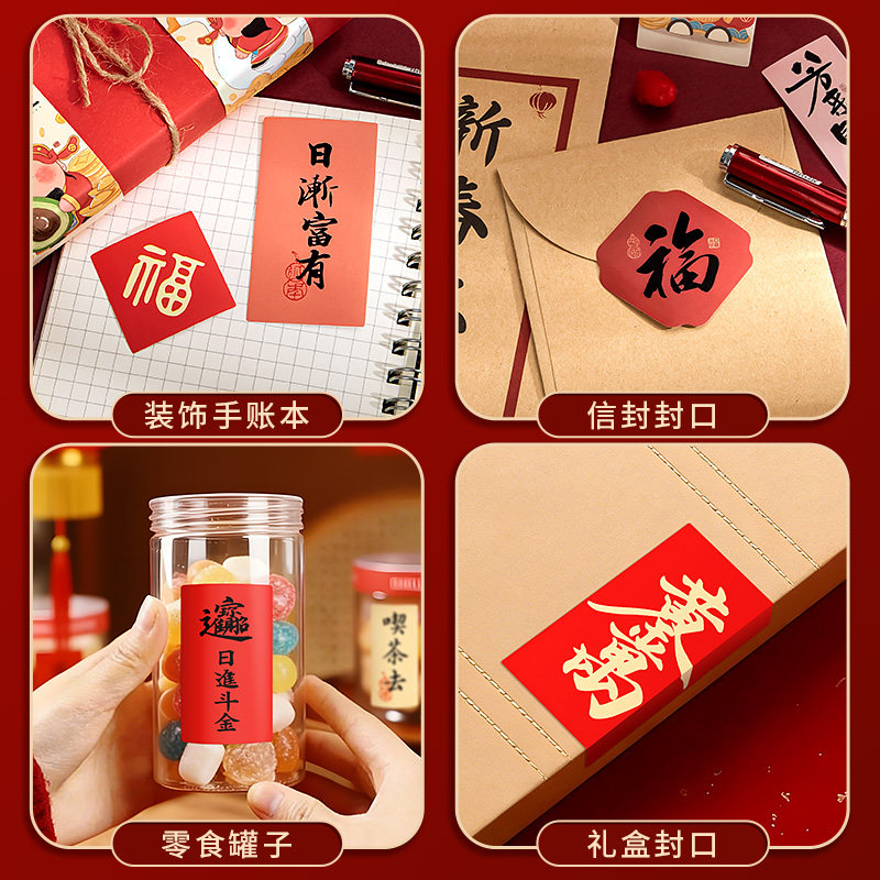ins古风书法文字贴纸中式福字励志小纸条装饰贴画学生书桌手账素材杯贴创意祝福语标签贴高颜值彩色小卡纸