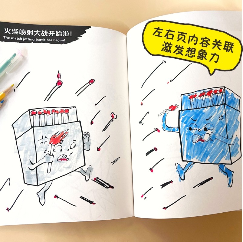 全套6册绘画我的创意漫画绘本培养宝宝绘画中英双语儿童填色手绘画册动物太空世界食物水果幼儿园绘画涂色书