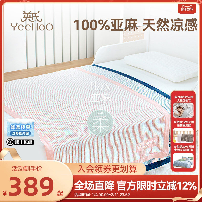 英氏儿童亚麻凉席新生儿宝宝透气夏季婴儿幼儿园午睡软席单人