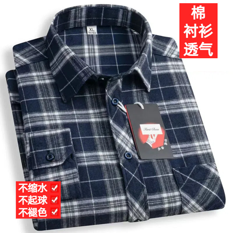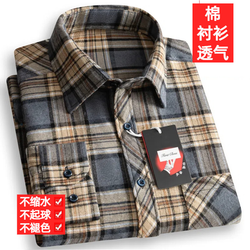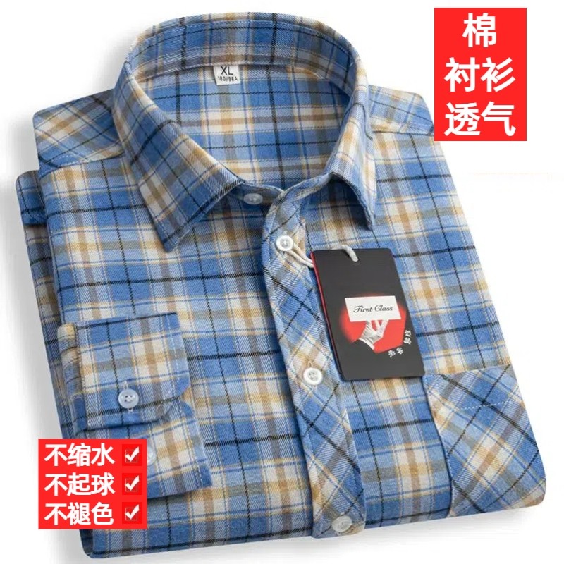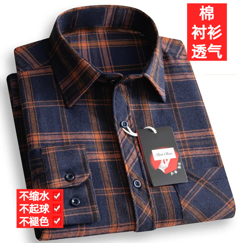 清仓特价纯棉男士长袖衬衫全棉磨毛格子衬衣商务休闲爸爸装新款