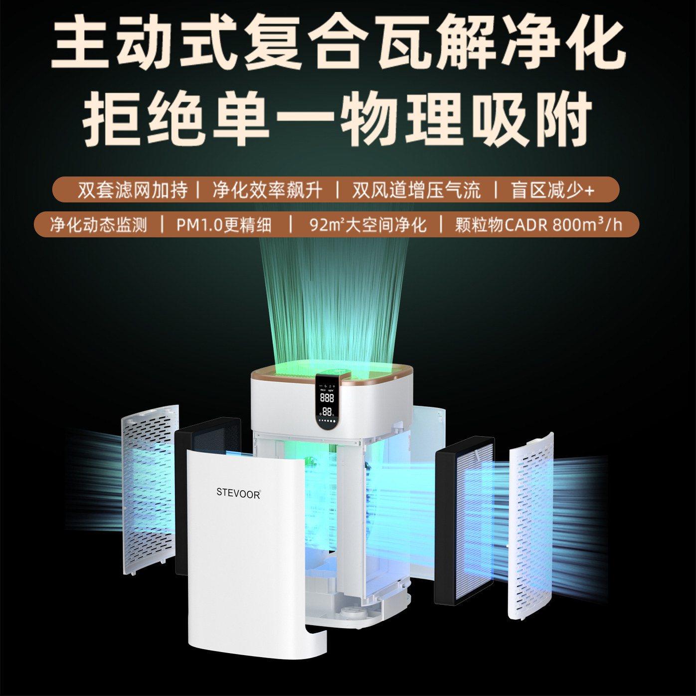 STEVOOR斯帝沃空气净化器A8除甲醛苯母婴卧室大面积办公室烟雾味