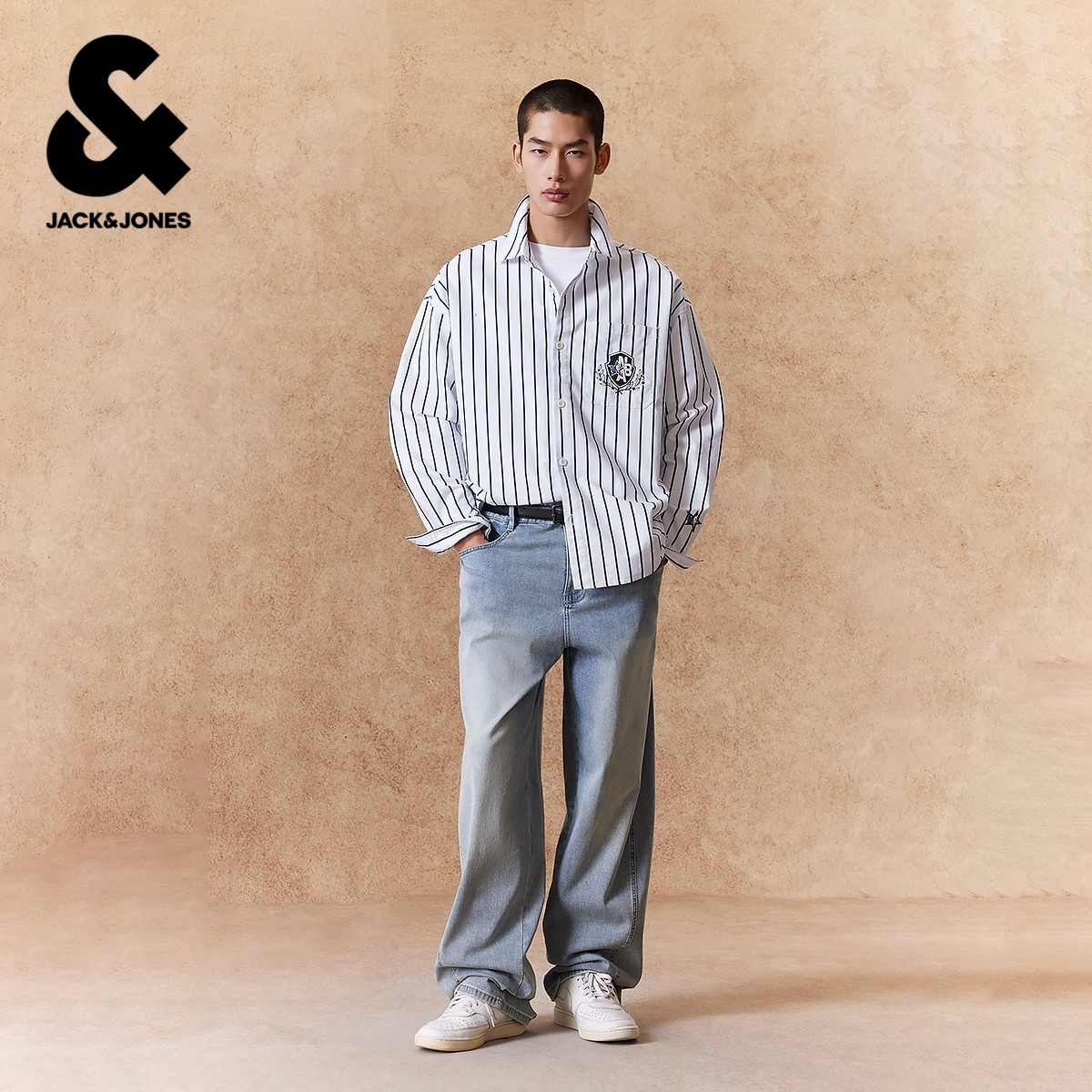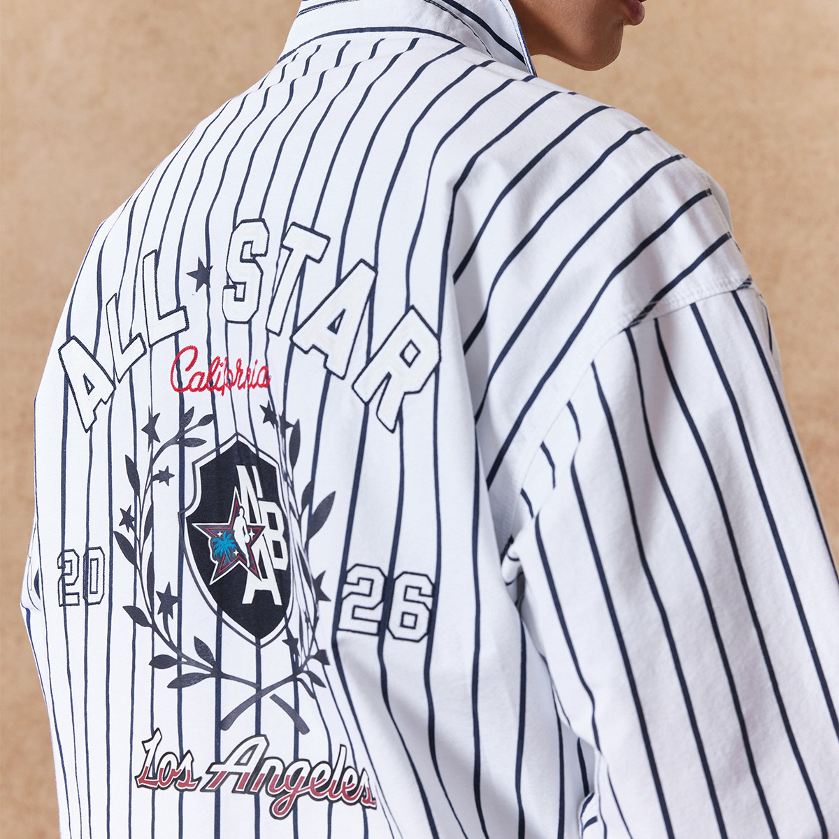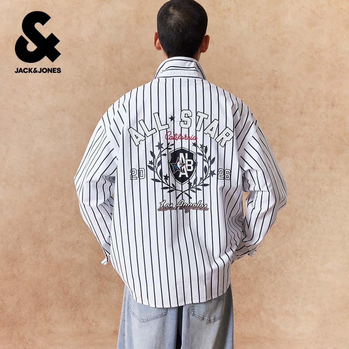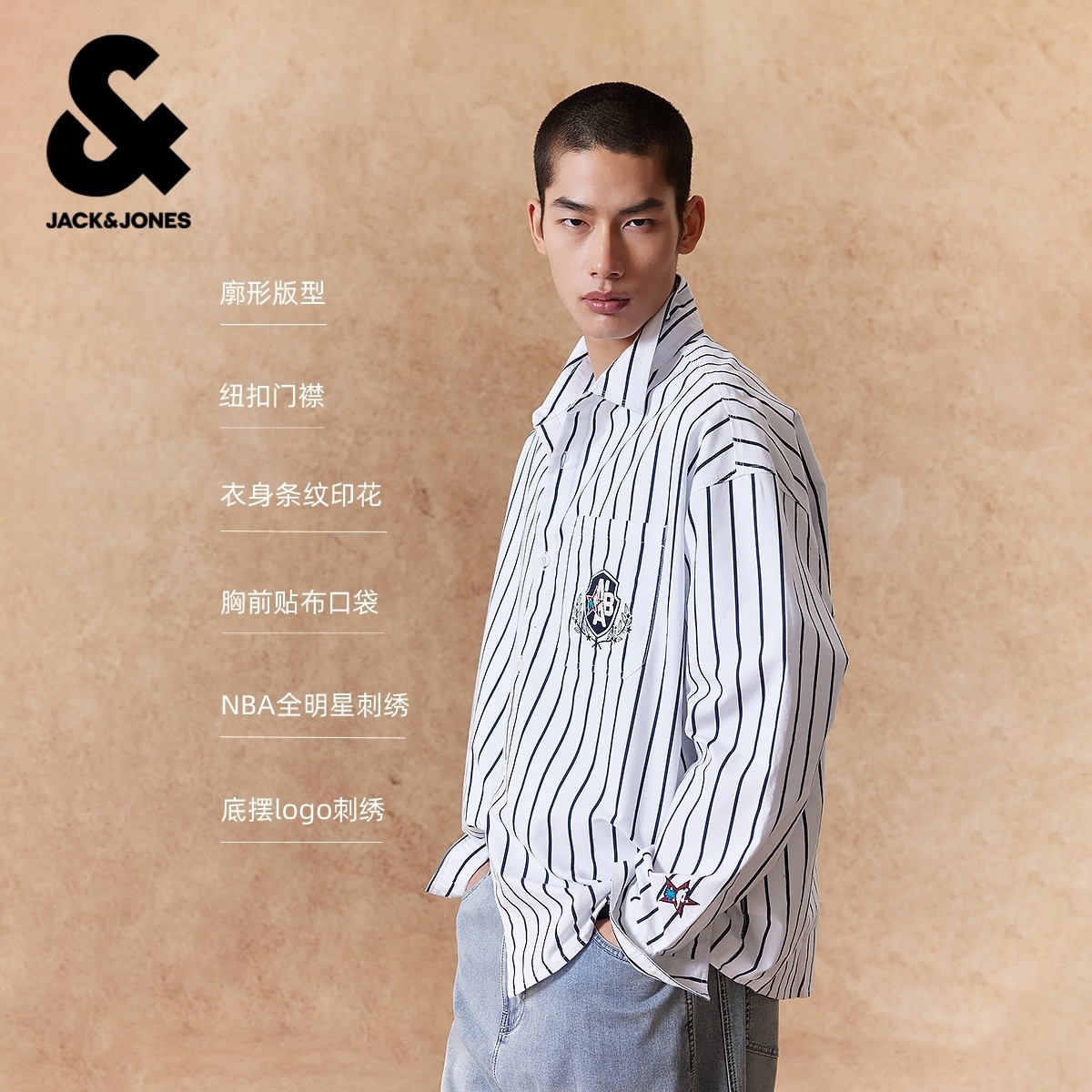 【NBA联名款】杰克琼斯男款春季衬衫外套长袖条纹全明星刺绣廓形