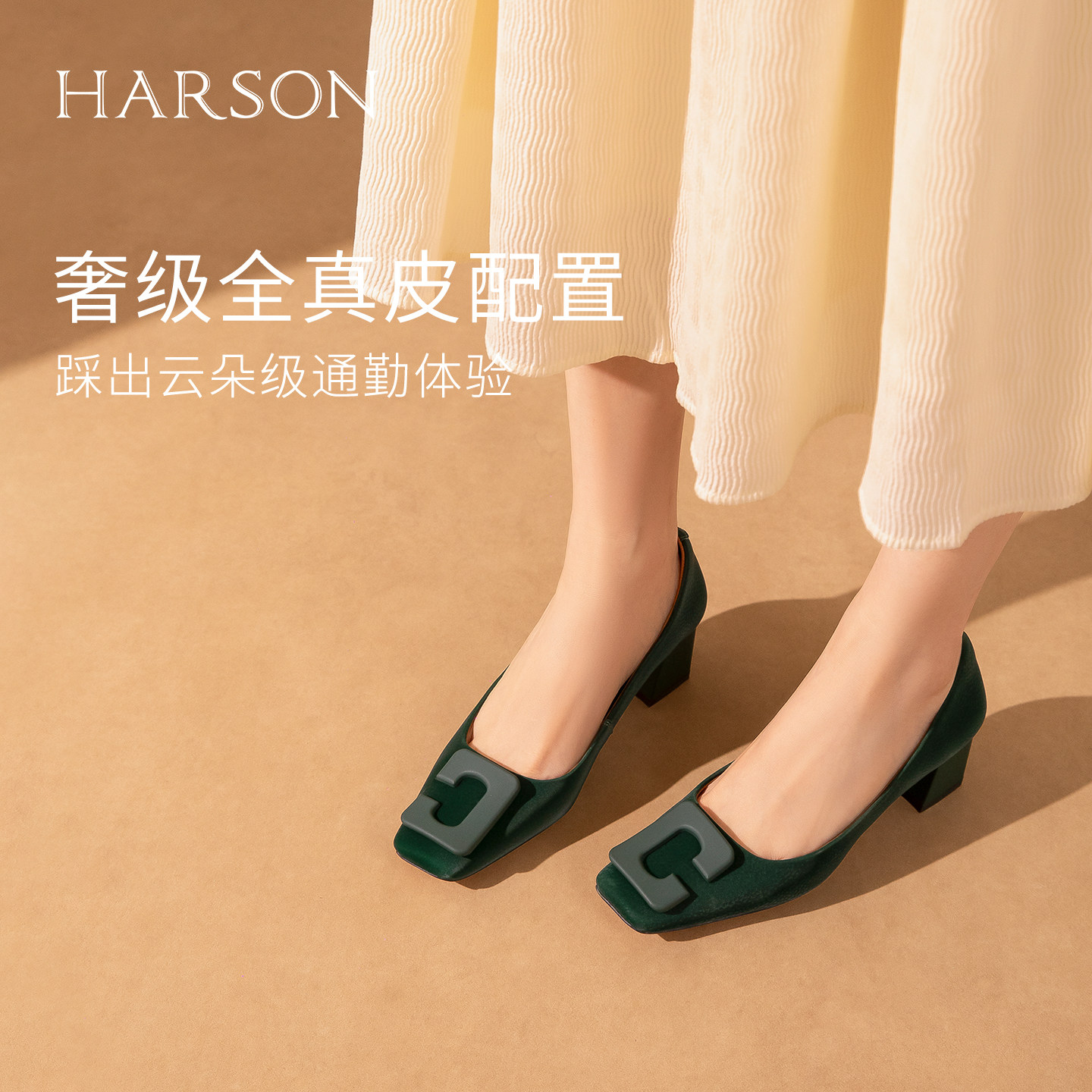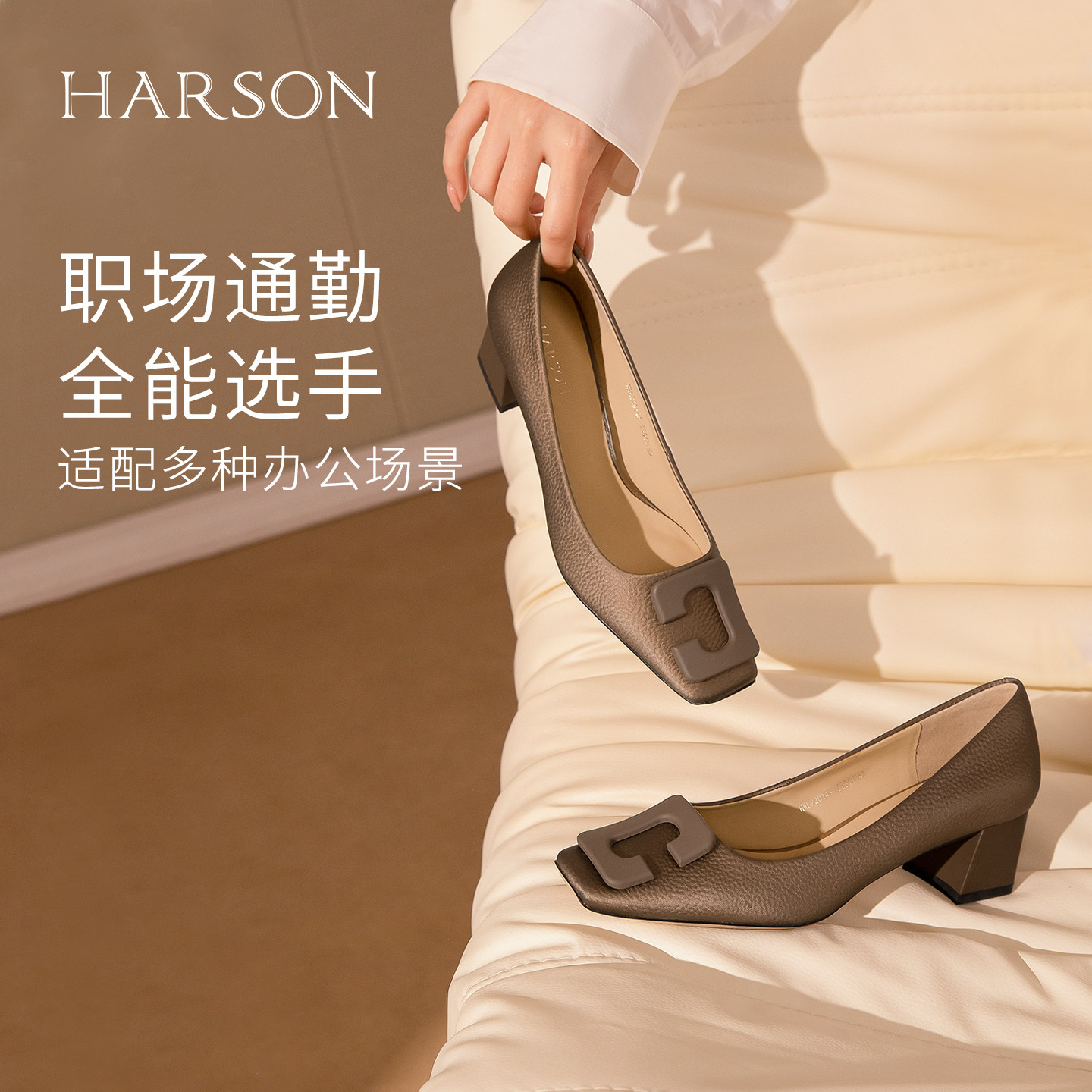 哈森春新款小方头高跟鞋女粗跟时尚通勤百搭单鞋女HWL220143