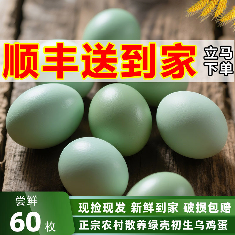 顺丰包邮丨90枚乌鸡蛋60枚整箱新鲜绿壳蛋40枚正宗农家散养土鸡蛋