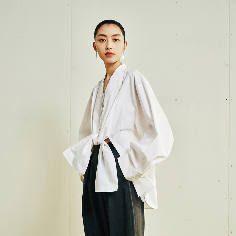 【LESSxSamuel】春秋设计感衬衣女解构全棉长袖白衬衫2O7213150