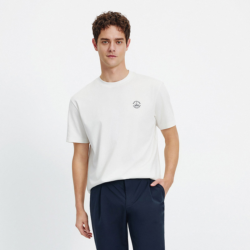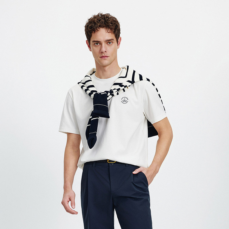 [凉感]Navigare意大利小帆船白色圆领短袖T恤男2026春夏新款上衣