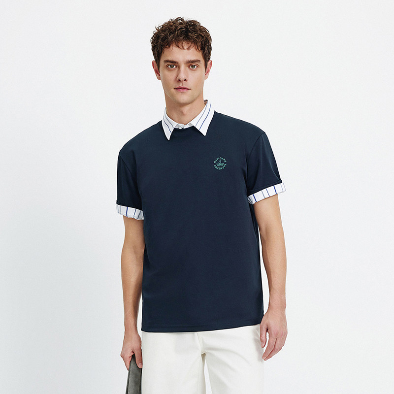 【春上新系列凉感】杰克琼斯男装新款纯色打底衫刺绣短袖男款T恤