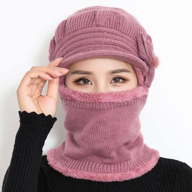 围巾帽子手套一体女连帽冬季帽可爱保暖围脖毛绒冬天三件套厚防寒