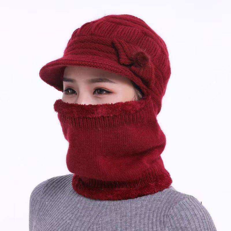 中老年人帽子女士冬天加厚连体妈妈毛线帽老人奶奶老太太冬季保暖
