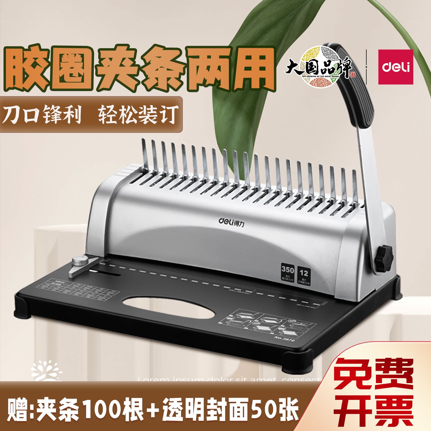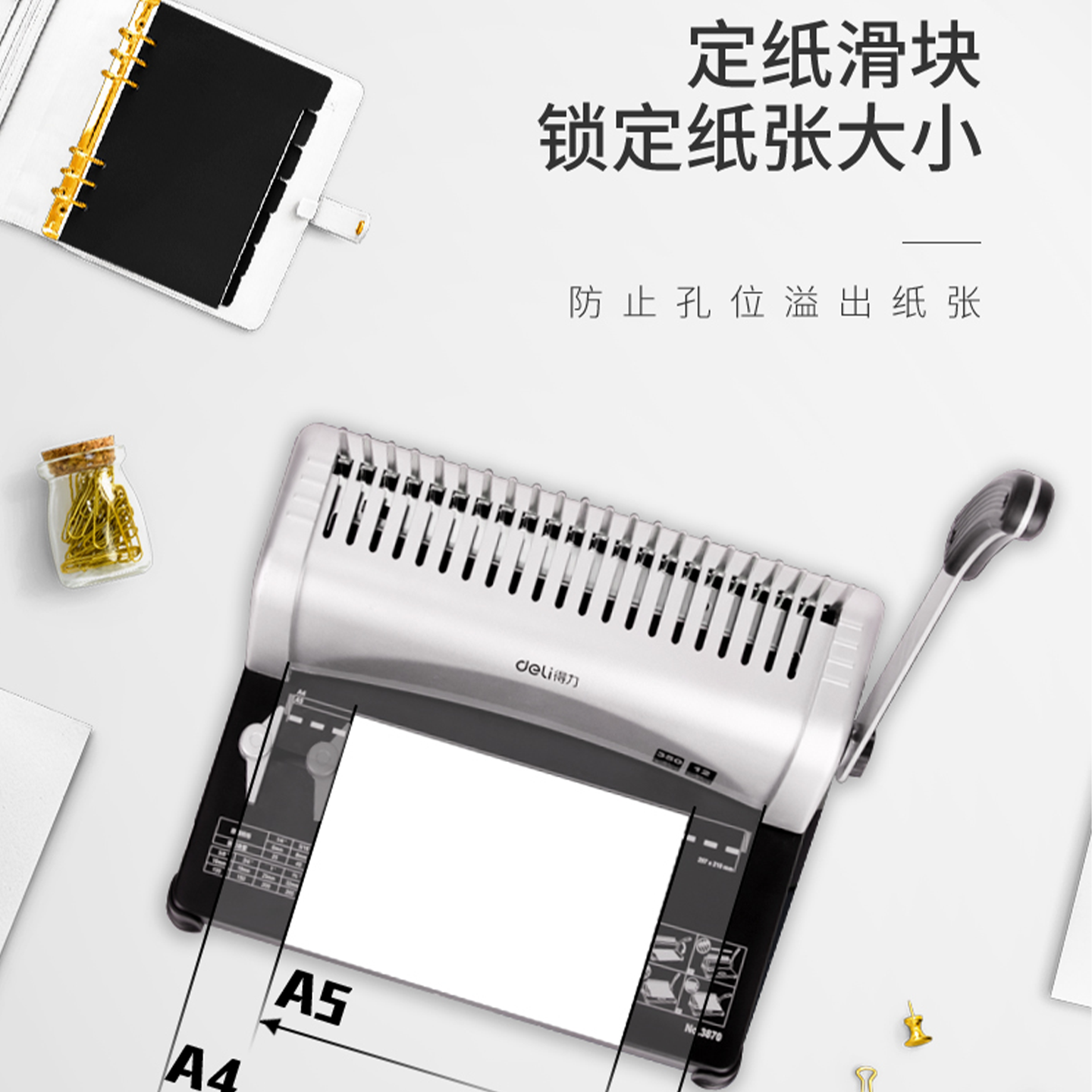 得力梳式装订机3870/3872/3874档案合同标书A4文件夹条胶圈打孔机